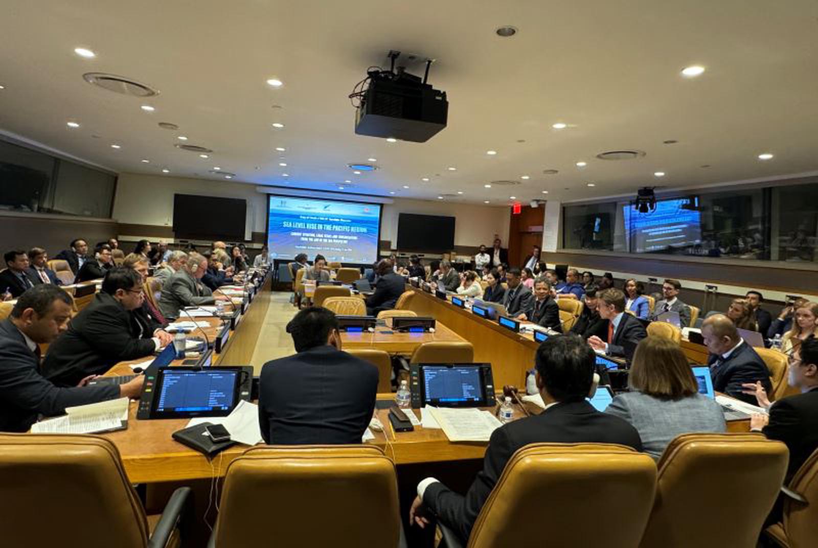Tại đây, Thứ trưởng Thường trực Bộ Ngoại giao Nguyễn Minh Vũ, Trưởng đoàn Đại biểu Việt Nam đã chủ trì Hội thảo quốc tế “Nước biển dâng tại khu vực Thái Bình Dương: Thực trạng, các vấn đề pháp lý và đánh giá từ góc độ Luật Biển” và buổi gặp mặt thường niên của Nhóm bạn bè Công ước Luật Biển (UNCLOS) nhân dịp kỉ niệm 30 năm ngày Công ước có hiệu lực và để công bố việc Việt Nam giới thiệu PGS.TS. Nguyễn Thị Lan Anh, Viện trưởng Viện Biển Đông, Học viện Ngoại giao ứng cử vào vị trí thẩm phán Tòa án Quốc tế về Luật Biển (ITLOS) nhiệm kỳ 2026-2035.