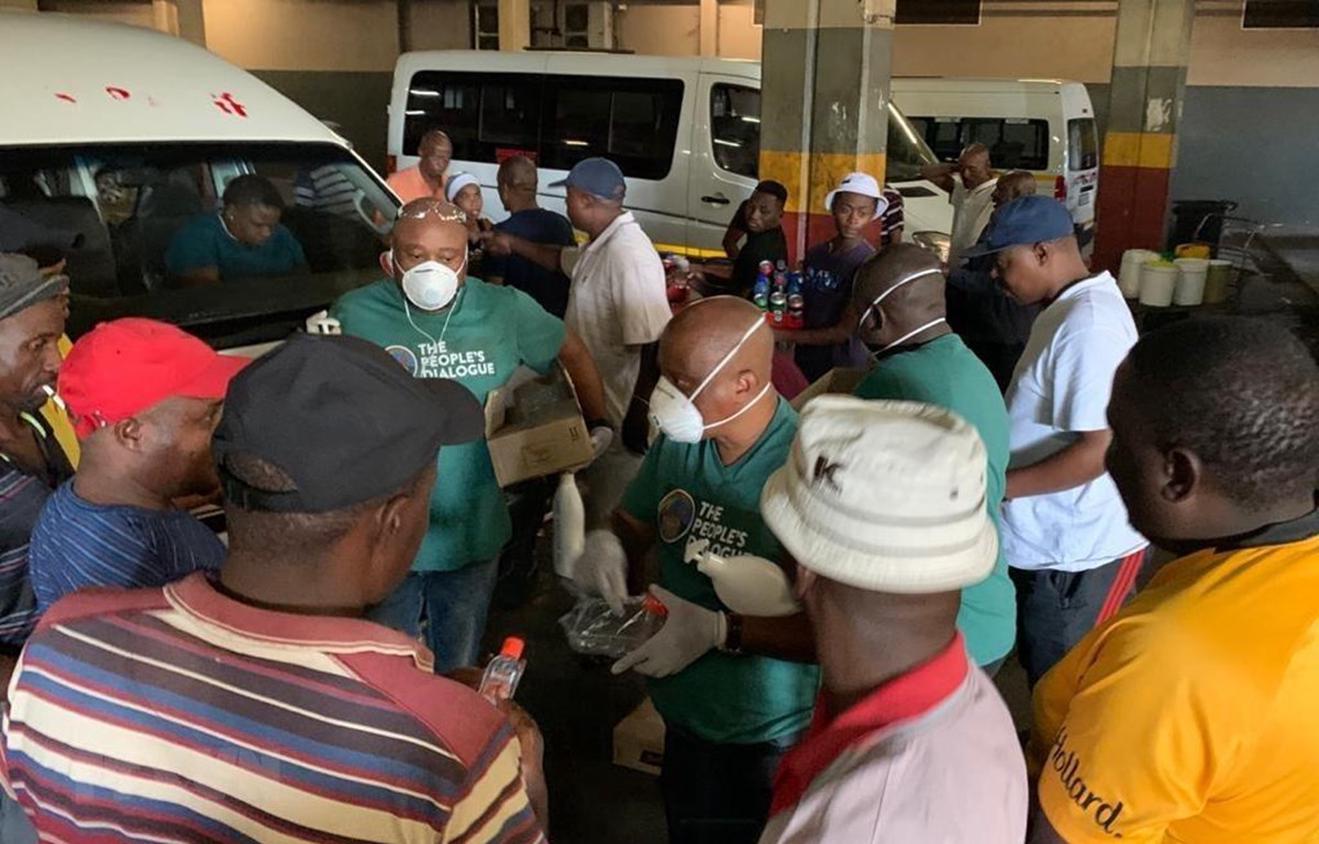 Nhân viên y tế phát dung dịch khử trùng tay tại một bến xe khách tại thủ đô Pretoria, Nam Phi. (Ảnh: Phi Hùng/TTXVN)