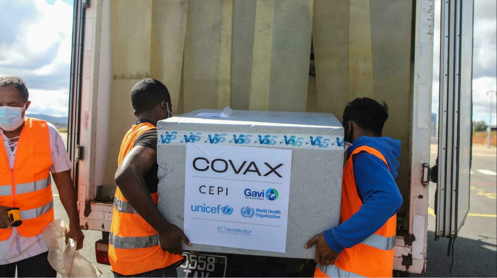 Những hộp vắc xin AstraZeneca nằm trong Chương trình COVAX được phân phối tại Madagascar, ngày 8/5/2021. Ảnh: Mamyrael / AFP