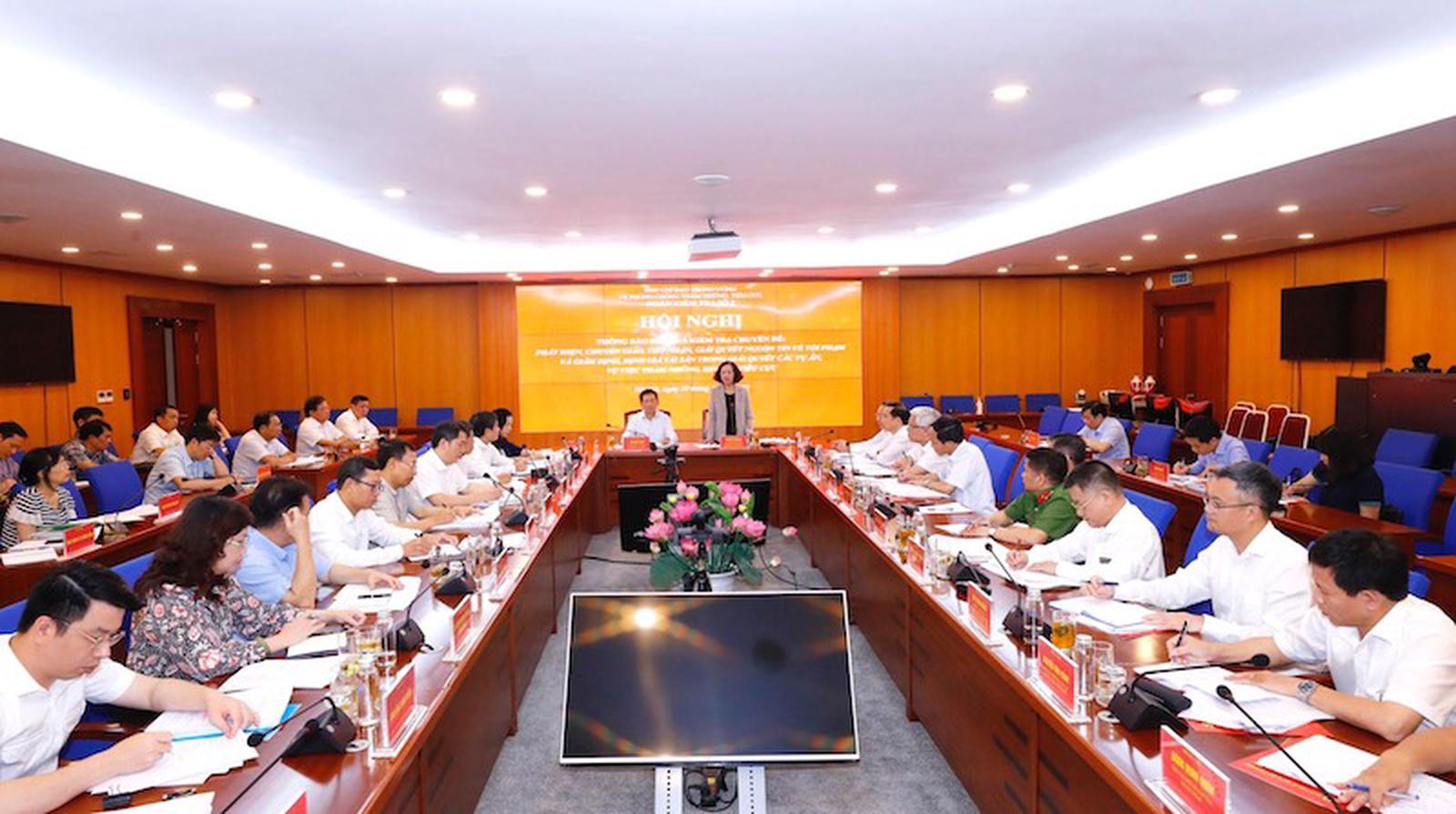 Tại hội nghị này đã thông báo kết quả kiểm tra công tác phát hiện, chuyển giao, tiếp nhận, giải quyết tố giác, tin báo về tội phạm, kiến nghị khởi tố các vụ việc có dấu hiệu tội phạm về tham nhũng, kinh tế, tiêu cực (nguồn tin về tội phạm) và công tác giám định, định giá tài sản trong giải quyết các vụ án, vụ việc tham nhũng, kinh tế, tiêu cực.