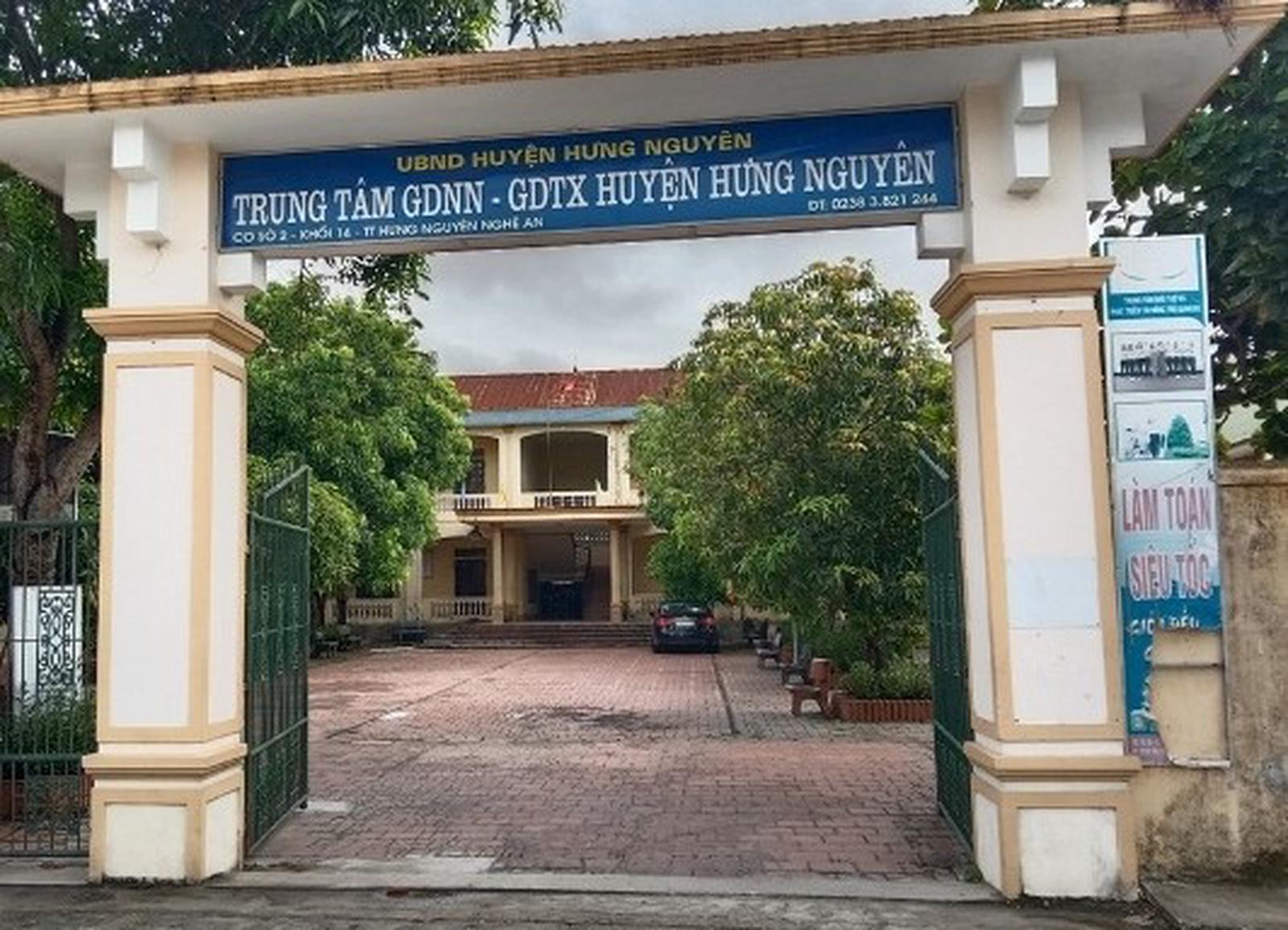 Trung tâm GDNN- GDTX huyện Hưng Nguyên, nơi xảy ra nhiều sai phạm được cơ quan chức năng kết luận. Ảnh: Xuân Thống