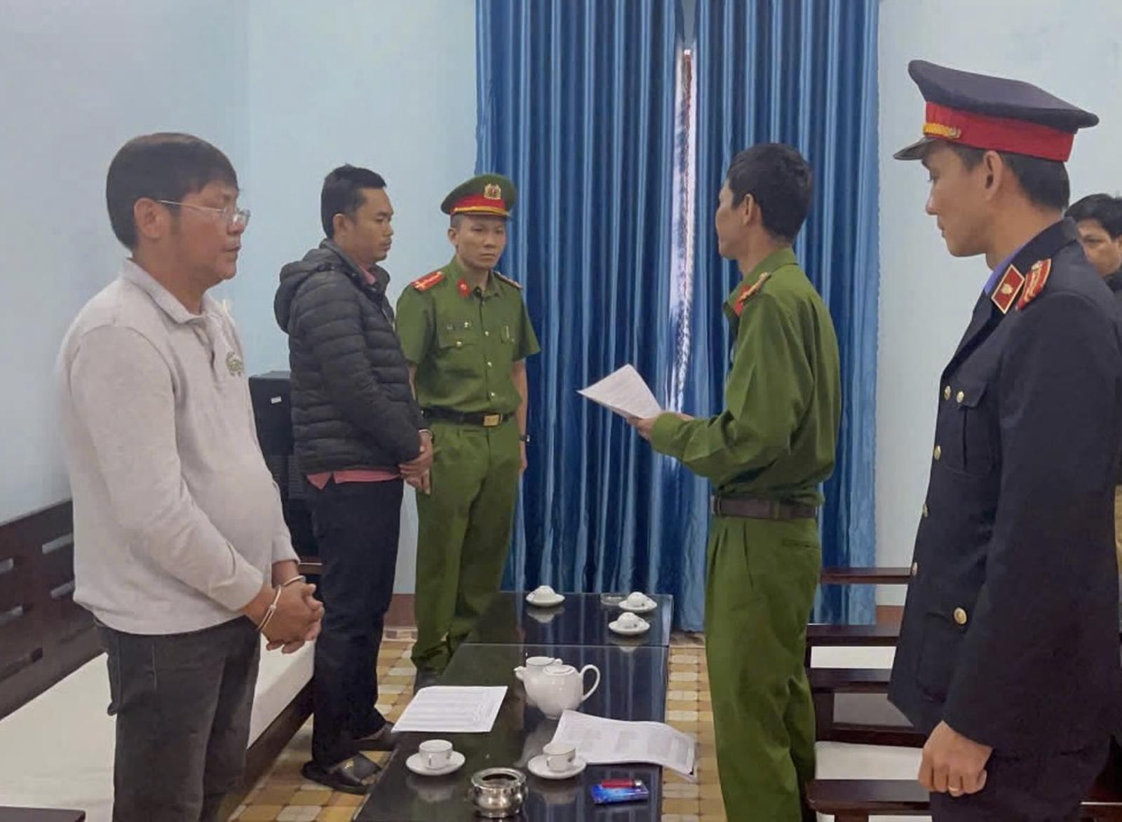 Công an thực hiện lệnh bắt tạm giam ông Dũng (bìa trái) và thuộc cấp. Ảnh: HH