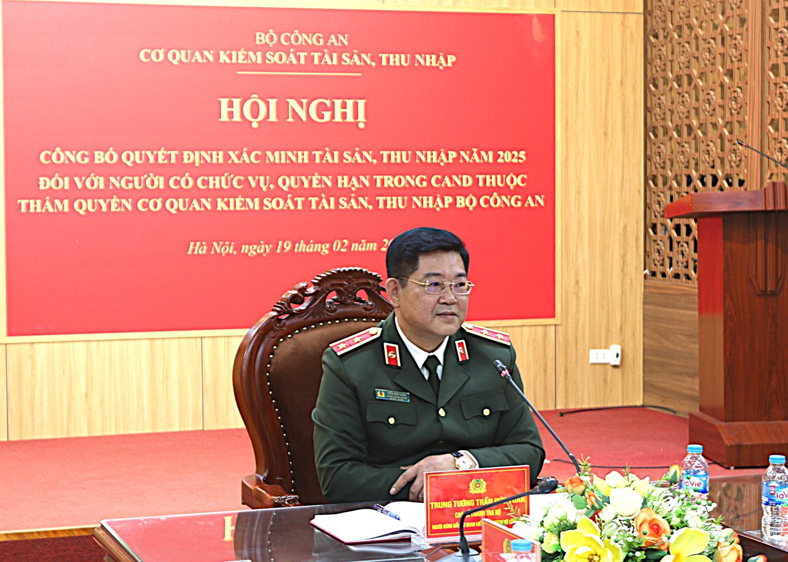 Trung tướng Trần Đức Tuấn, Chánh Thanh tra Bộ Công an, người đứng đầu Cơ quan kiểm soát tài sản, thu nhập Bộ Công an, chủ trì hội nghị. Ảnh: Hoàng Nam