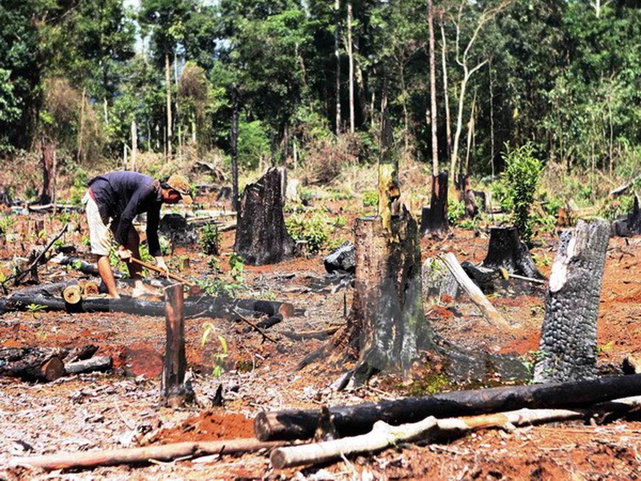 Rừng tự nhiên bị tàn phá tan hoang. (Ảnh: Dương Giang/TTXVN)