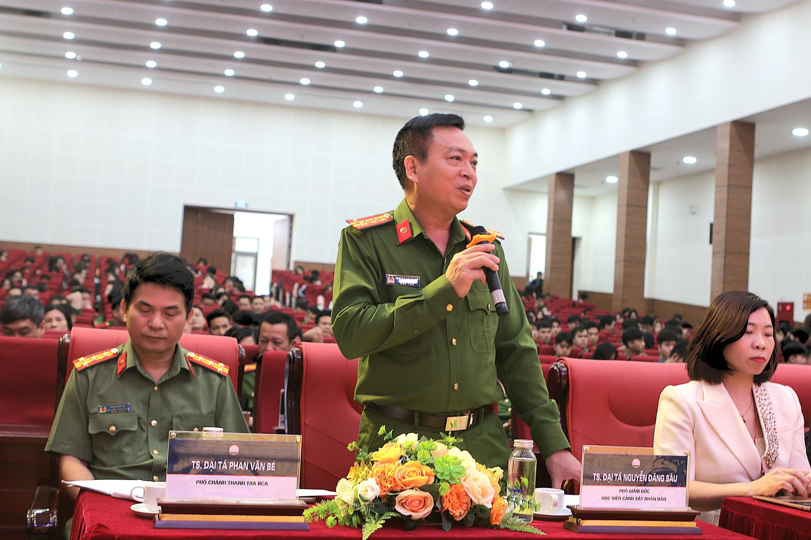 Đại tá TS Nguyễn Đăng Sáu, Phó Giám đốc Học viện Cảnh sát Nhân dân chia sẻ quan điểm tại Hội thảo khoa học quốc gia với chủ đề: “Giáo dục liêm chính với cuộc đấu tranh phòng, chống tham nhũng, tiêu cực ở Việt Nam hiện nay - Lý luận và thực tiễn”. Ảnh: Hoàng Nam