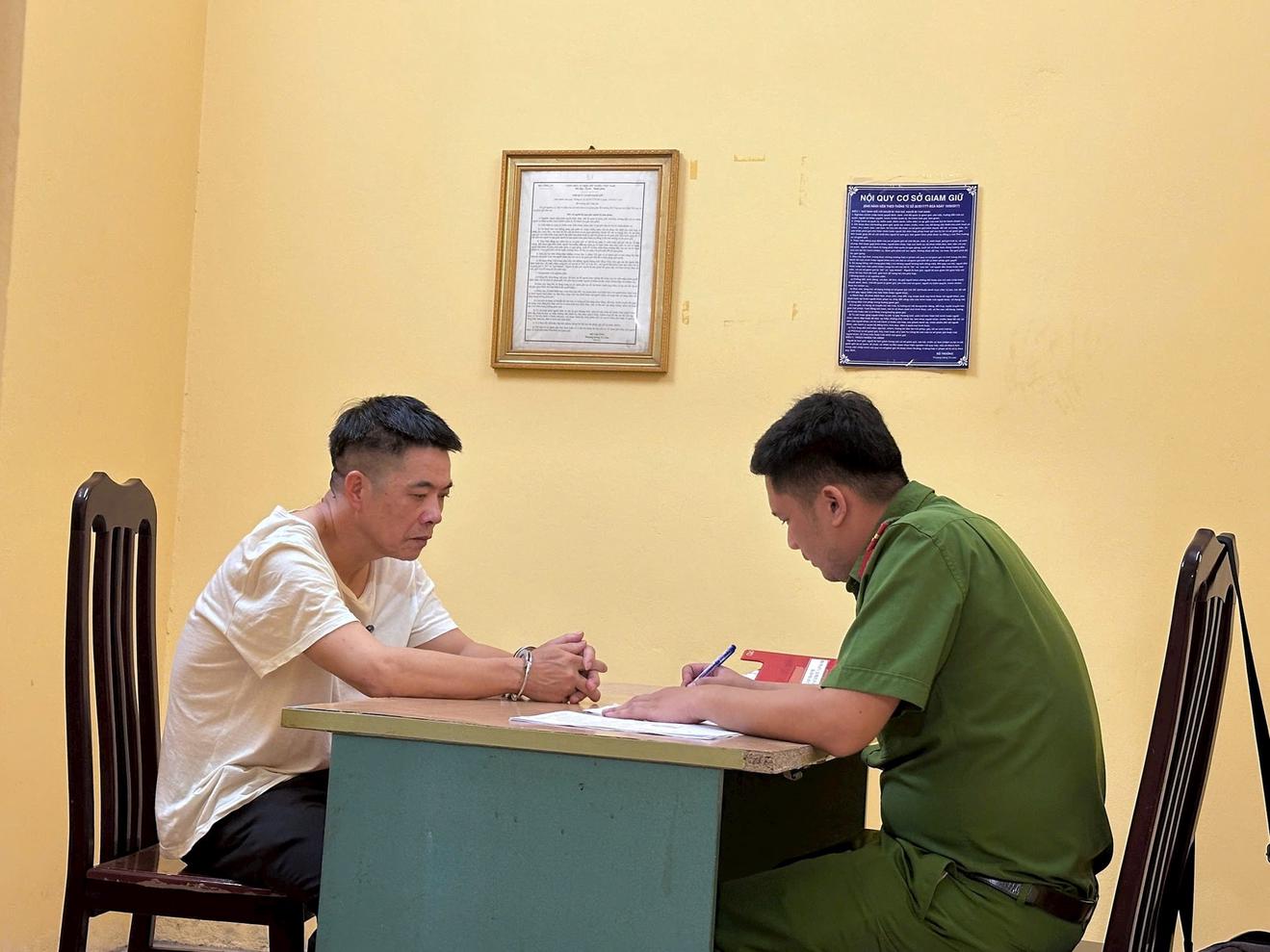 Bị can Nguyễn Xuân Phiến (Chủ tịch UBND xã Tự Nhiên) tại cơ quan công an. Ảnh CATP