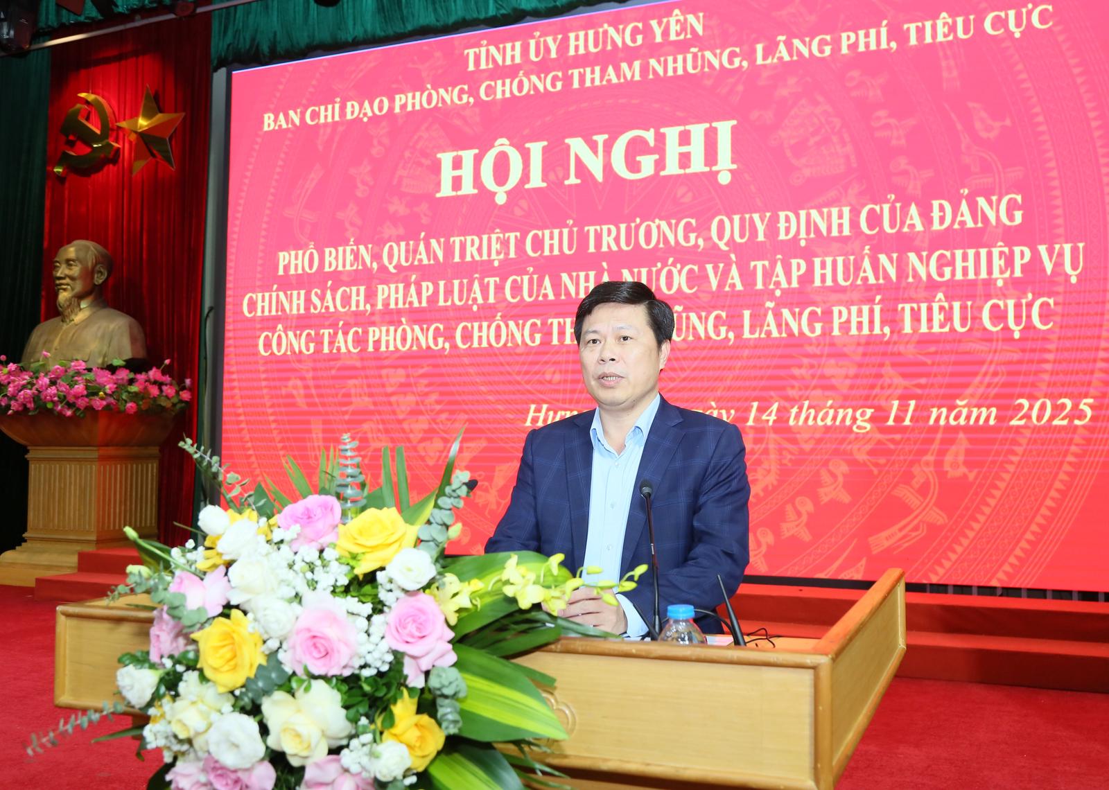 Phát biểu khai mạc hội nghị, Phó Bí thư Thường trực Tỉnh ủy, Phó Trưởng ban Thường trực Ban Chỉ đạo tỉnh Hưng Yên Trần Quốc Toản nhấn mạnh tầm quan trọng chiến lược của công tác này. Theo ông, thời gian qua, đặc biệt là từ khi Hưng Yên áp dụng mô hình chính quyền địa phương hai cấp, công tác lãnh đạo, chỉ đạo phòng, chống tham nhũng, tiêu cực luôn được xem là nhiệm vụ trọng yếu trong công tác xây dựng, chỉnh đốn Đảng.