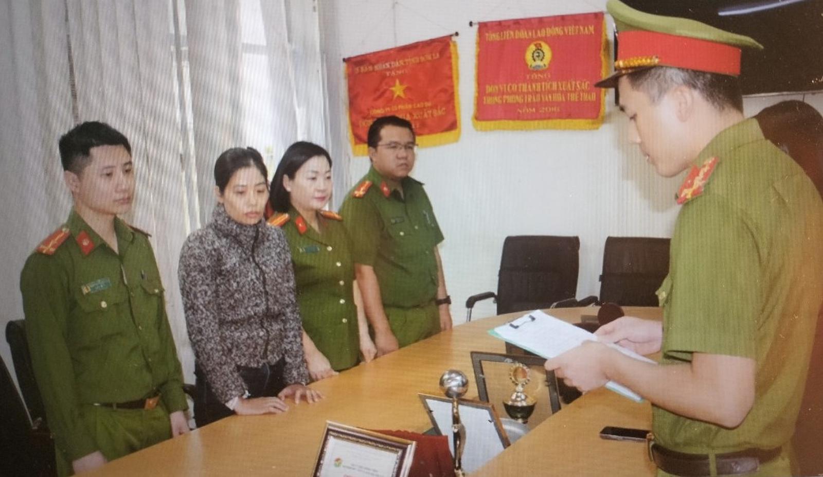 Bị can Đỗ Thị Duyên (áo xám) tại cơ quan công an. Ảnh: Công an Sơn La