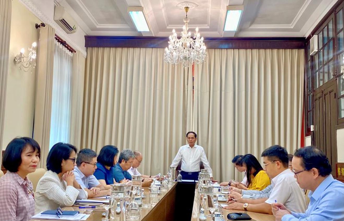 Bộ trưởng Bộ Ngoại giao Bùi Thanh Sơn phát biểu tại cuộc họp. Ảnh: Thanh Thanh