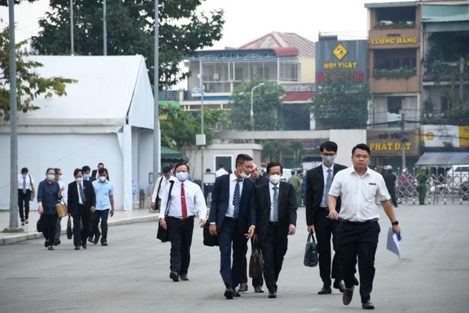 Thành phần HĐXX sơ thẩm gồm 2 thẩm phán, 3 hội thẩm nhân dân, ngoài ra còn có 81 luật sư bào chữa và 43 người làm chứng đã có mặt từ sớm để tham gia phiên xét xử. Ảnh: Chí Cường