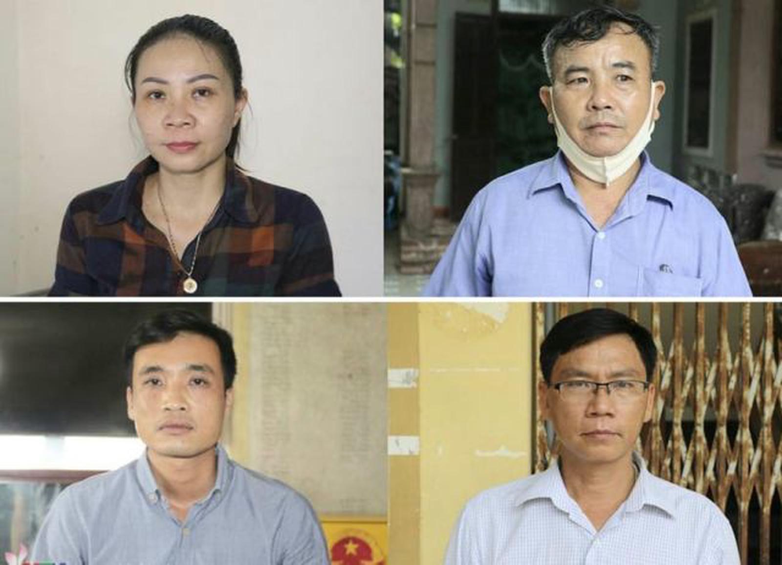 4 bị can gồm: Nguyễn Mão (SN 1963), nguyên Chủ tịch UBND xã Hợp Thành; Trương Văn Chung (SN 1973), kế toán trưởng UBND xã; Nguyễn Công Bằng (SN 1986), công chức địa chính, xây dựng, nông nghiệp, môi trường UBND xã; Nguyễn Thị Thương (SN 1977), công chức tư pháp kiêm thủ quỹ UBND xã.