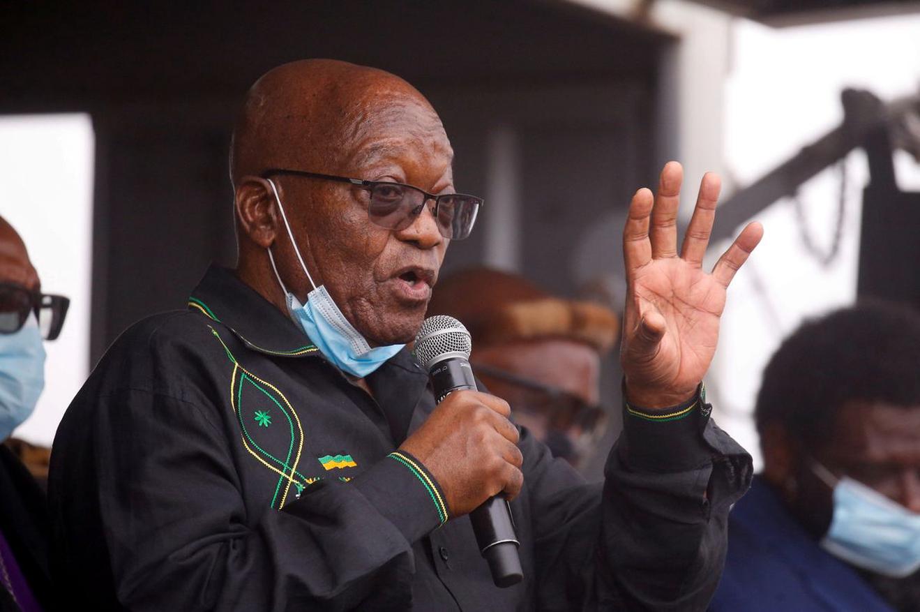 Cựu Tổng thống Nam Phi Jacob Zuma phát biểu trước những người ủng hộ tại nhà riêng ở Nkandla, Nam Phi, ngày 4/7/2021. Ảnh: REUTERS / Rogan Ward