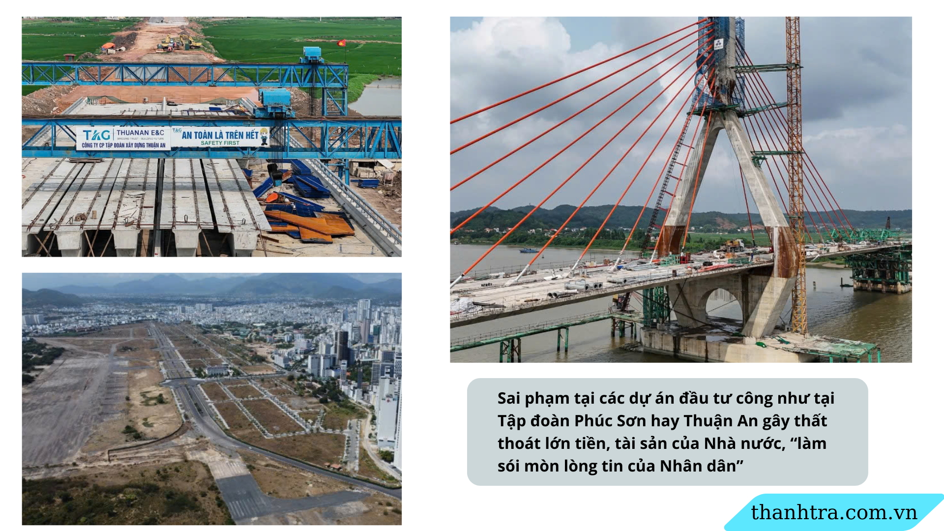 Cùng với đó, phải nâng cao trách nhiệm giải trình. Những người có thẩm quyền trong quá trình phê duyệt, tổ chức thực hiện dự án cần xác định rõ trách nhiệm, không thể núp bóng tập thể hay né tránh sai phạm. Khi xảy ra vi phạm, phải xử lý nghiêm minh, không có vùng cấm, không có ngoại lệ, tương tự như tại vụ án tại Tập đoàn Phúc Sơn hay tới đây là vụ án tại Tập đoàn Thuận An.