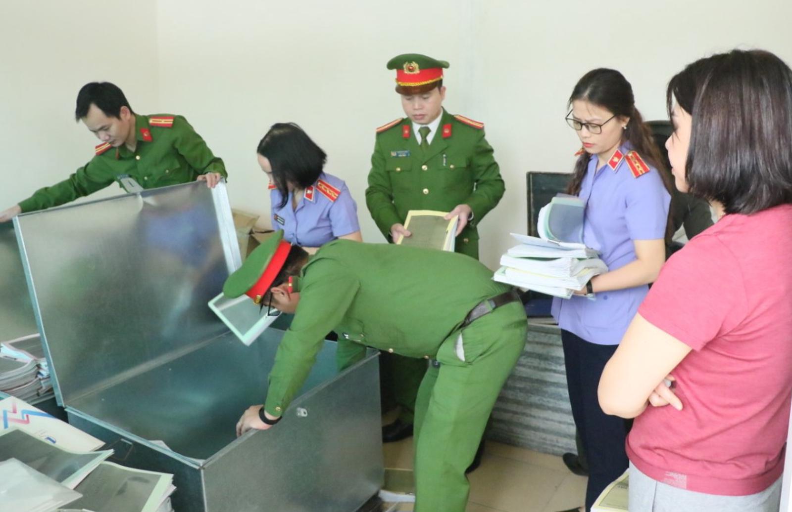 Cơ quan CSĐT, Công an tỉnh Hà Tĩnh khám xét nơi làm việc các bị can trong vụ án vi phạm quy định về đấu thầu, xảy ra tại Công ty CP Công nghệ thông tin Lam Hồng. Ảnh: Công an Hà Tĩnh