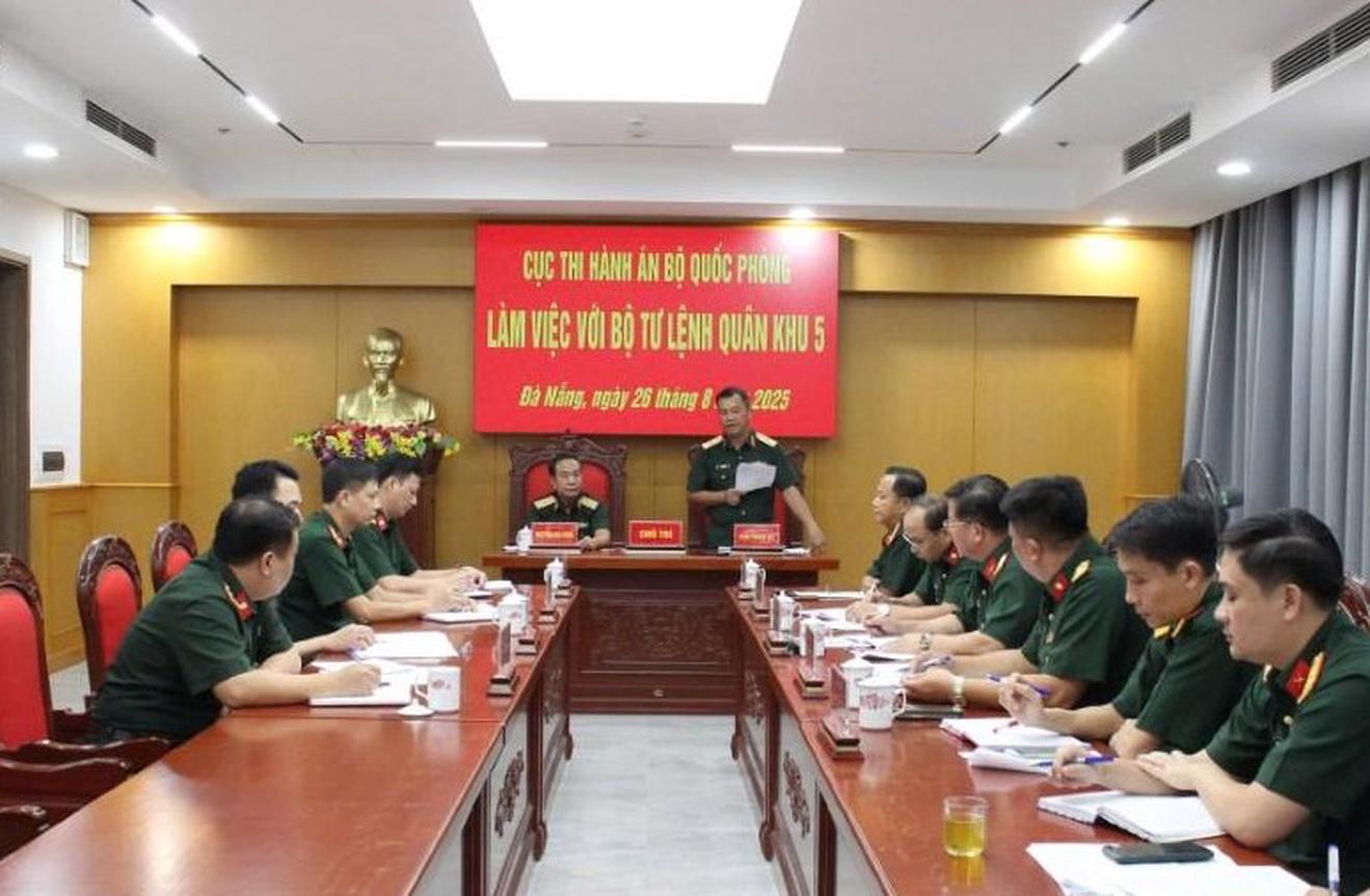 (Thanh tra) - Sáng 26/8, Cục Thi hành án - Bộ Quốc phòng đã có buổi làm việc với Bộ Tư lệnh Quân khu 5 nhằm tập trung kiểm tra công tác thi hành án dân sự. Buổi làm việc đã ghi nhận những kết quả tích cực, đặc biệt là khả năng chủ động tham mưu, chỉ đạo giải quyết kịp thời các vụ việc thi hành án khó khăn, phức tạp, thuộc diện Ban Chỉ đạo Trung ương về phòng, chống tham nhũng, lãng phí, tiêu cực theo dõi, chỉ đạo.