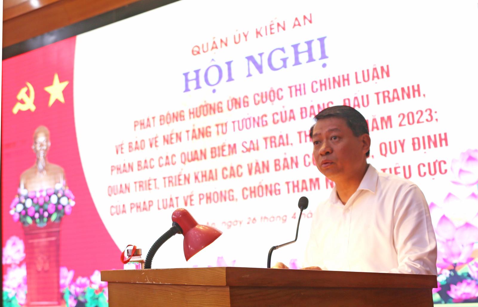 Phát biểu tại hội nghị, Bí thư Quận ủy, Chủ tịch HĐND quận Kiến An Phạm Văn Khanh nhấn mạnh: Bảo vệ nền tảng tư tưởng của Đảng, đấu tranh phản bác các quan điểm sai trái, thù địch; phòng chống tham nhũng, tiêu cực là nhiệm vụ đặc biệt quan trọng của Đảng và của cả hệ thống chính trị trong giai đoạn hiện nay; là trách nhiệm của mỗi cán bộ, đảng viên.