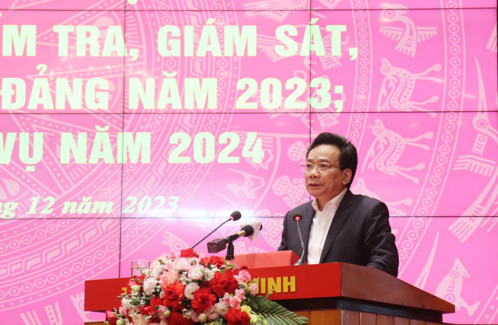 Bí thư Tỉnh ủy Quảng Ninh Nguyễn Xuân Ký ghi nhận và đánh giá cao những kết quả đạt được trong công tác kiểm tra, giám sát, thi hành kỷ luật của Đảng trong năm 2023. Ảnh: TTTT