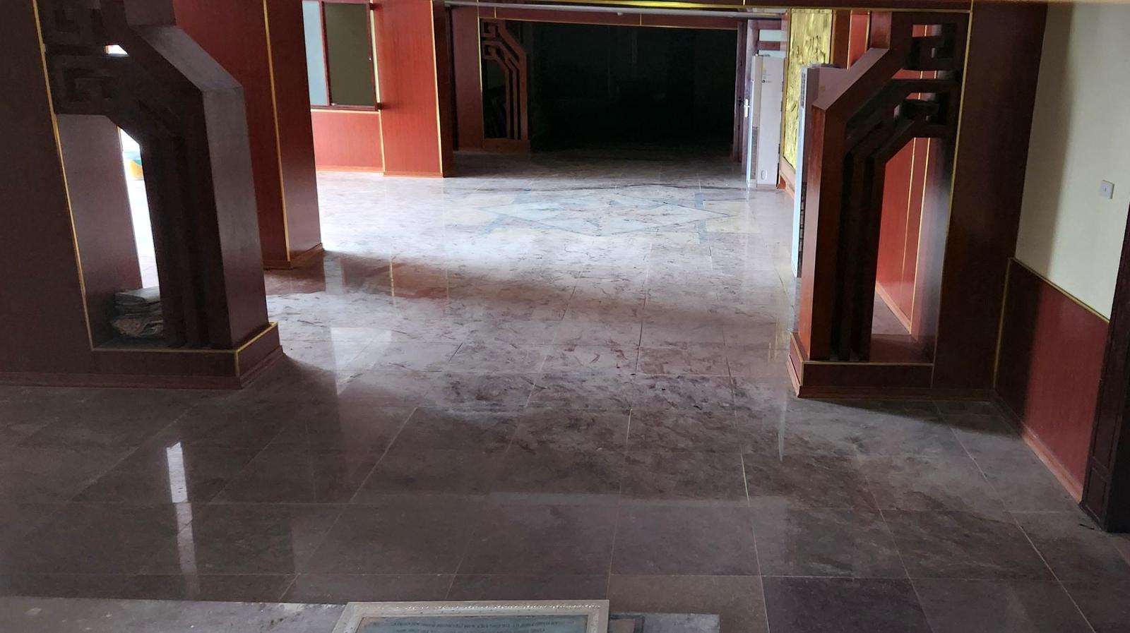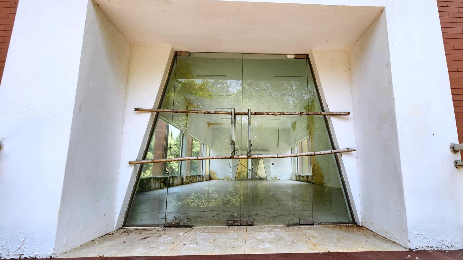 Tuy nhiên, cả một công trình đồ sộ nhưng chỉ có “cái vỏ” bên ngoài, bên trong là những căn phòng trống trải, bụi bẩn phủ khắp nơi. Cửa chính được khóa và giằng néo tạm bợ bởi những thanh tre đề phòng mùa mưa bão. Nhiều bức tường đã bắt đầu xuống cấp, hư hỏng với vết nứt, vàng ố hoặc phủ đầy rêu xanh. Bên ngoài, nhiều bức tường cỏ dại mọc và những dòng sơn bị vẽ bậy lên.
