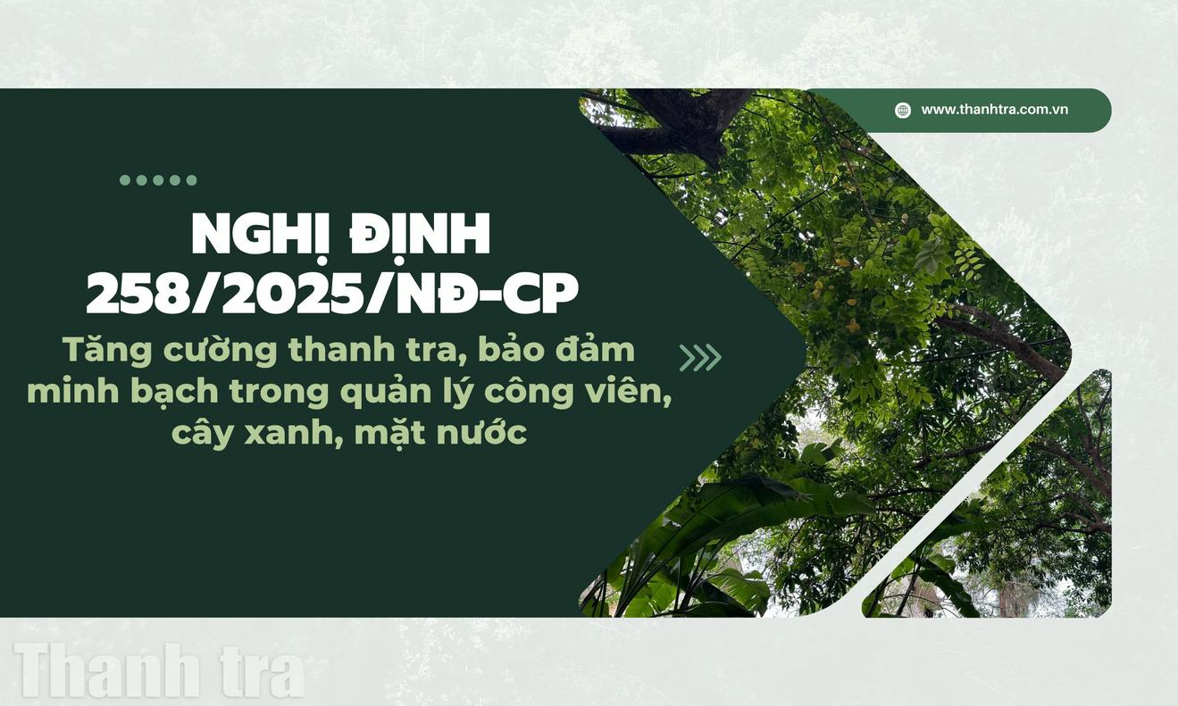 (Thanh tra) - Nghị định 258/2025/NĐ-CP quy định rõ cơ chế thanh tra, kiểm tra từ Trung ương đến địa phương, góp phần tăng cường kỷ cương, ngăn chặn thất thoát, lãng phí và bảo đảm tính minh bạch trong quản lý công viên, cây xanh, mặt nước.