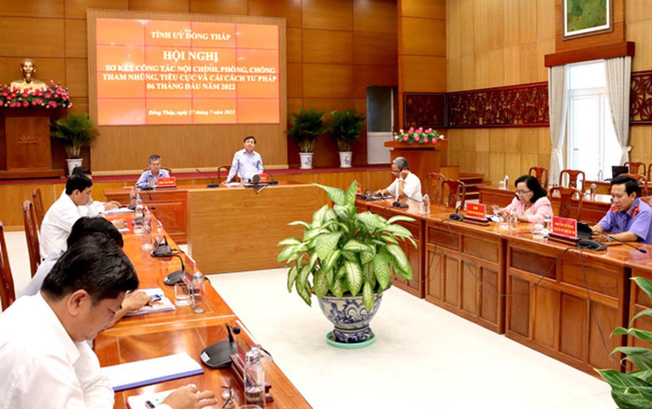 Tỉnh ủy Đồng Tháp sơ kết công tác nội chính, PCTN, tiêu cực và cải cách tư pháp 6 tháng đầu năm 2022. Ảnh: dongthap.gov.vn