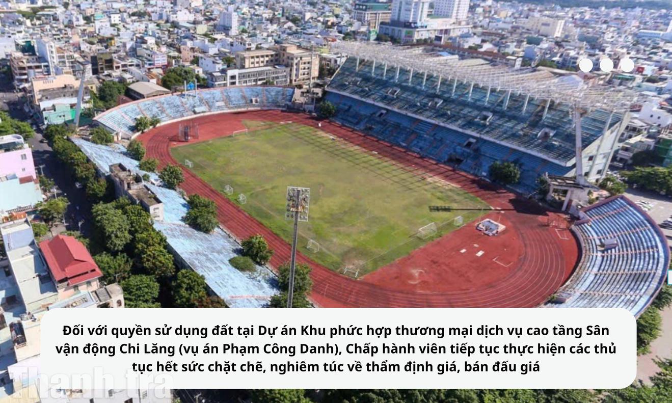Riêng đối với quyền sử dụng đất tại Dự án Khu phức hợp thương mại dịch vụ cao tầng Sân vận động Chi Lăng (vụ án Phạm Công Danh), Trưởng THADS TP Đà Nẵng yêu cầu Chấp hành viên tiếp tục thực hiện các thủ tục hết sức chặt chẽ, nghiêm túc về thẩm định giá, bán đấu giá. Sau khi có kết quả thẩm định giá, Chấp hành viên chủ động thông tin làm việc với các bên đường sự thỏa thuận trước, nếu không thỏa thuận được mới thực hiện quy trình thông báo, chấm điểm.