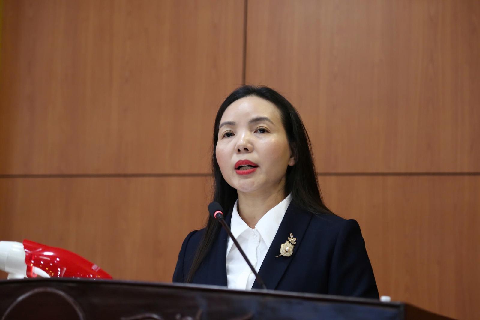 Chủ nhiệm Uỷ ban Kiểm tra Tỉnh ủy Thái Bình Ngô Thị Kim Hoàn trình bày báo cáo tại hội nghị. Ảnh: TC