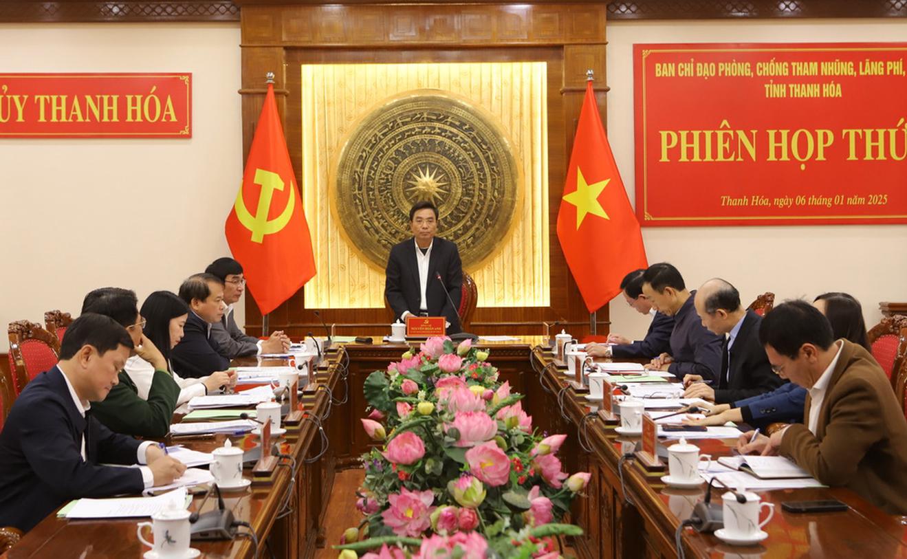 (Thanh tra) - Sáng 6/1, Ban Chỉ đạo phòng, chống tham nhũng, lãng phí, tiêu cực tỉnh Thanh Hóa (Ban Chỉ đạo tỉnh) tổ chức phiên họp thứ 10 để đánh giá kết quả hoạt động của Ban Chỉ đạo tỉnh năm 2024, nhiệm vụ trọng tâm năm 2025. Ông Nguyễn Doãn Anh, Ủy viên Trung ương Đảng, Bí thư Tỉnh ủy, Trưởng Ban Chỉ đạo tỉnh chủ trì phiên họp.