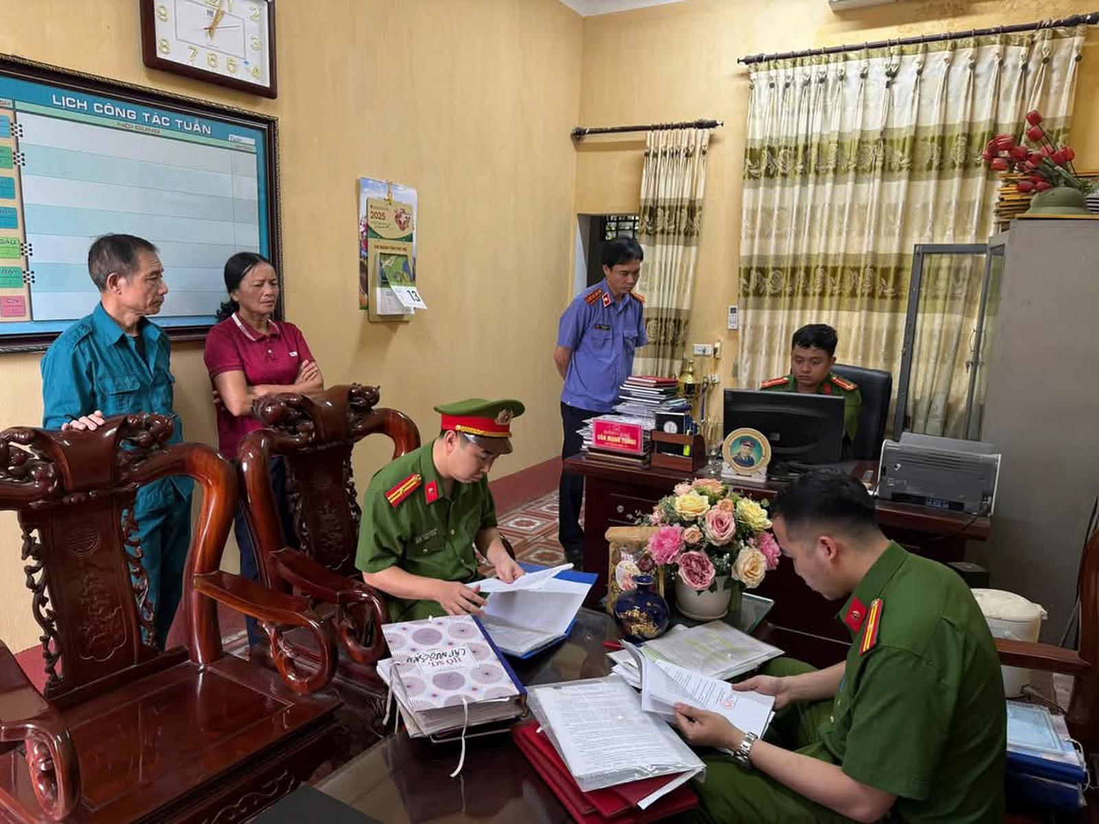 Lực lượng chức năng khám xét nơi làm việc của Chủ tịch UBND xã Thạch Khoán. Ảnh: ND