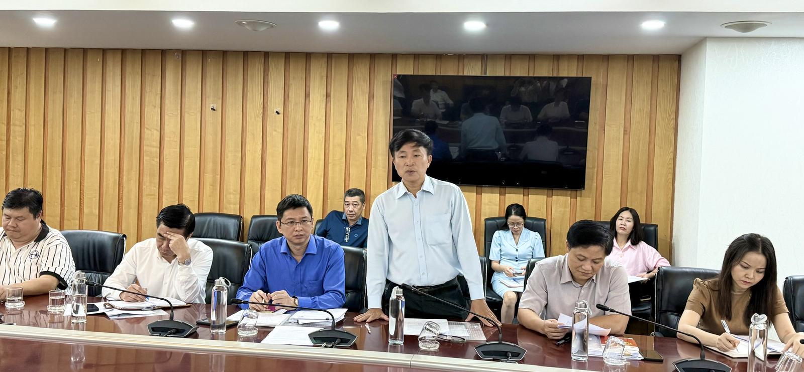 Vụ trưởng Vụ Pháp chế, Tổ trưởng Tổ công tác Trần Đăng Vinh phát biểu tại buổi làm việc. Ảnh: TH