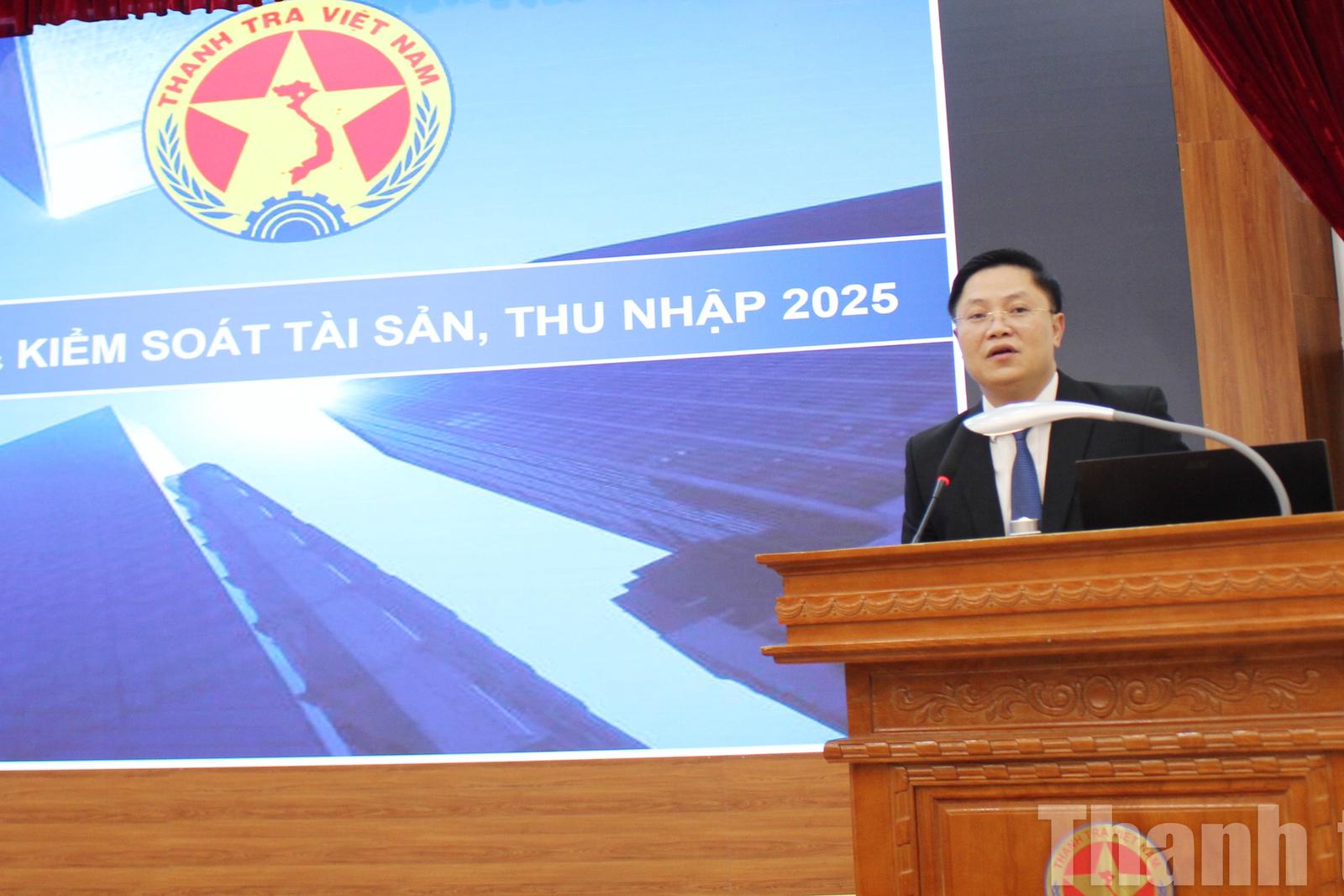 Phó Cục trưởng Cục IV Nguyễn Văn Tuấn giới thiệu về các quy định pháp luật liên quan đến công tác kê khai, kiểm soát tài sản, thu nhập năm 2025. Ảnh: LP