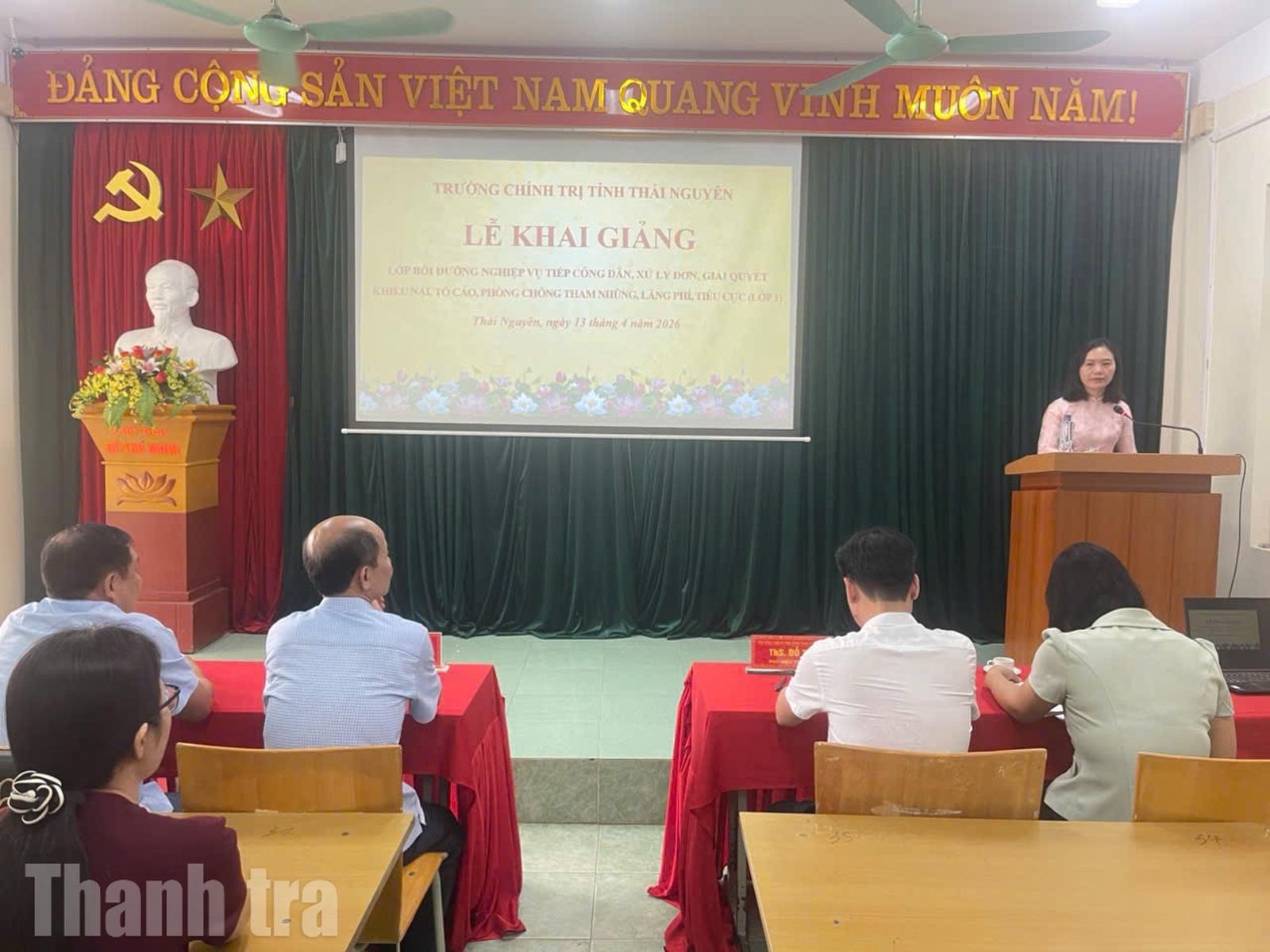 Từ 13-14/4, Trường Chính trị phối hợp với Thanh tra tỉnh Thái Nguyên tổ chức lớp bồi dưỡng cho cán bộ cấp xã về công tác tiếp công dân, giải quyết khiếu nại, tố cáo và phòng, chống tham nhũng, lãng phí, tiêu cực. Ảnh: PV