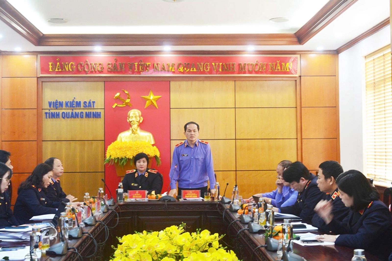 Viện trưởng VKSND tỉnh Quảng Ninh Phạm Viết Vượng phát biểu tại hội nghị. Ảnh: Thanh tra VKSND Tối cao