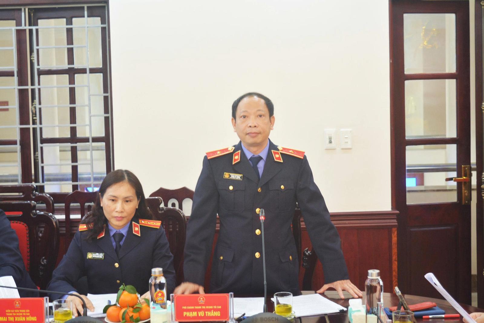 Phó Chánh Thanh tra VKSND Tối cao Phạm Vũ Thắng phát biểu tại hội nghị. Ảnh: Thanh tra VKSND Tối cao