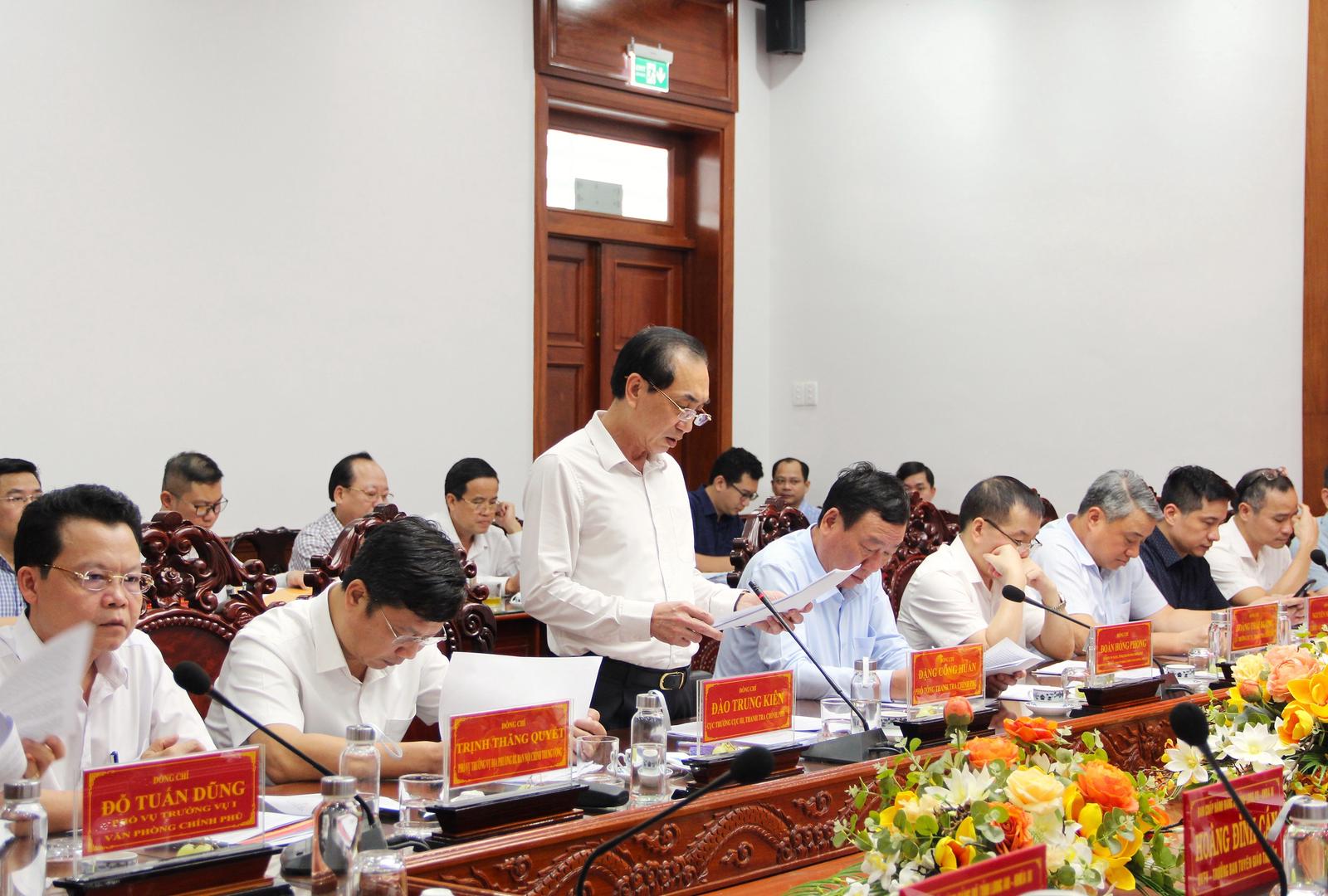 Phó Tổng Thanh tra Chính phủ Đặng Công Huẩn - Phó Trưởng đoàn trình bày dự thảo báo cáo kết quả kiểm tra. Ảnh: Chu Tuấn