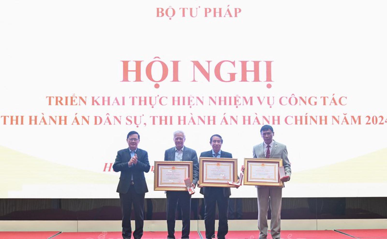 Tặng Bằng khen cho 10 cá nhân thuộc Bộ Tư pháp đã có thành tích xuất sắc. Ảnh: TH