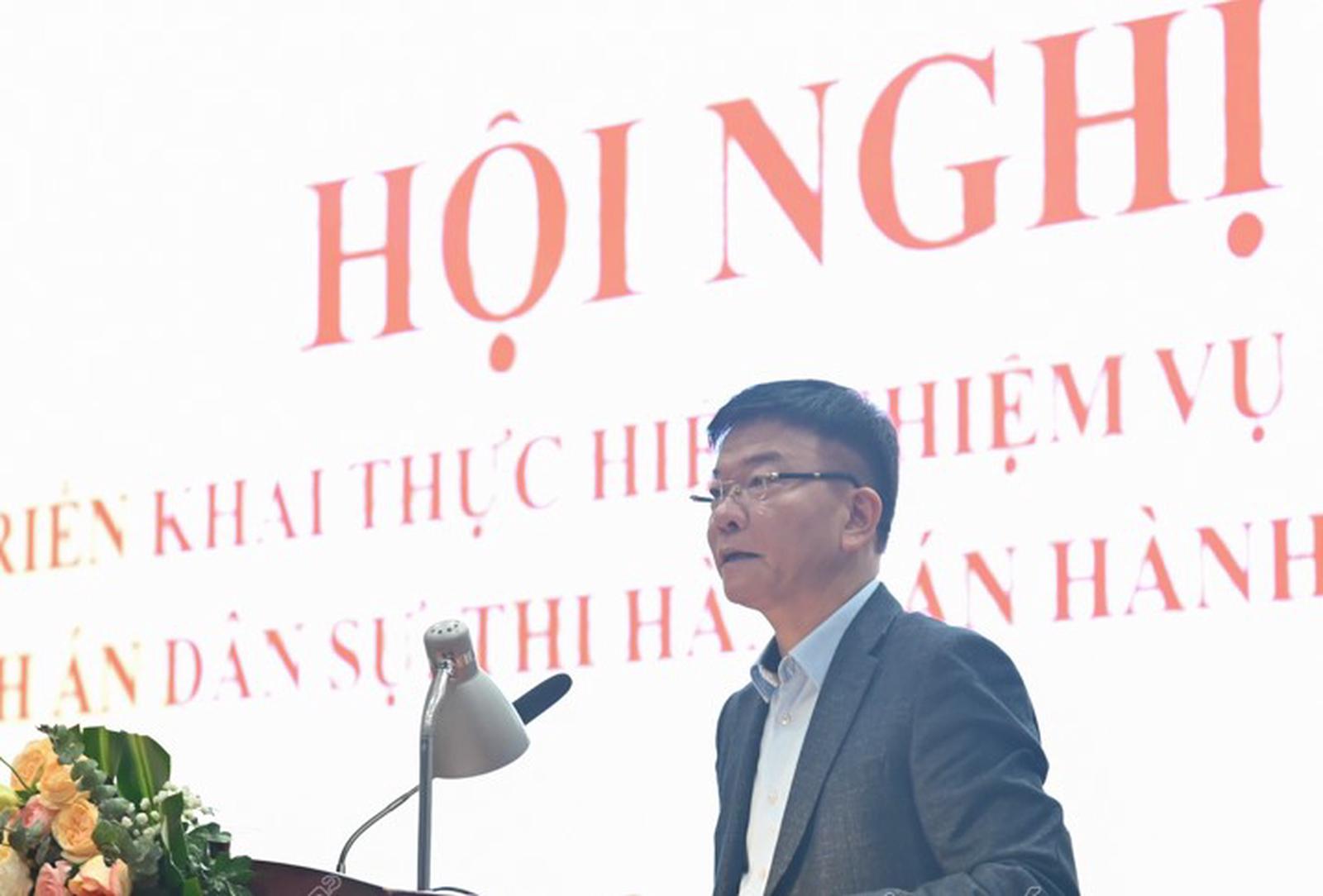 Phát biểu chỉ đạo, Bộ trưởng Lê Thành Long khẳng định, Ban Cán sự Đảng, lãnh đạo bộ luôn đặc biệt quan tâm tới công tác THADS, dành nhiều thời gian lãnh đạo, chỉ đạo công tác này như đã ban hành một nghị quyết riêng của Ban Cán sự Đảng về lãnh đạo thực hiện các nhiệm vụ trọng tâm THADS giai đoạn 2022 - 2026, tổ chức nhiều cuộc họp giao ban, buổi làm việc để cho ý kiến đối với các mặt công tác cụ thể trong lĩnh vực THADS cũng như chỉ đạo xử lý các vụ việc khó khăn, phức tạp.