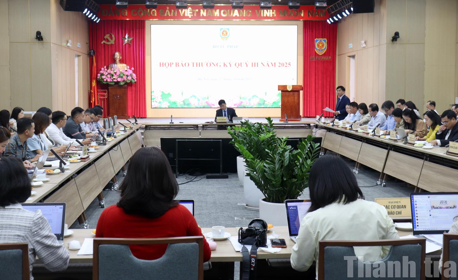 Thông tin tại buổi họp báo quý III/2025 diễn ra chiều 27/10, ông Đỗ Xuân Quý, Chánh Văn phòng, người phát ngôn Bộ Tư pháp cho biết, trong quý III/2025, công tác thi hành án dân sự (THADS), theo dõi thi hành án hành chính (THAHC) được triển khai quyết liệt, bài bản.