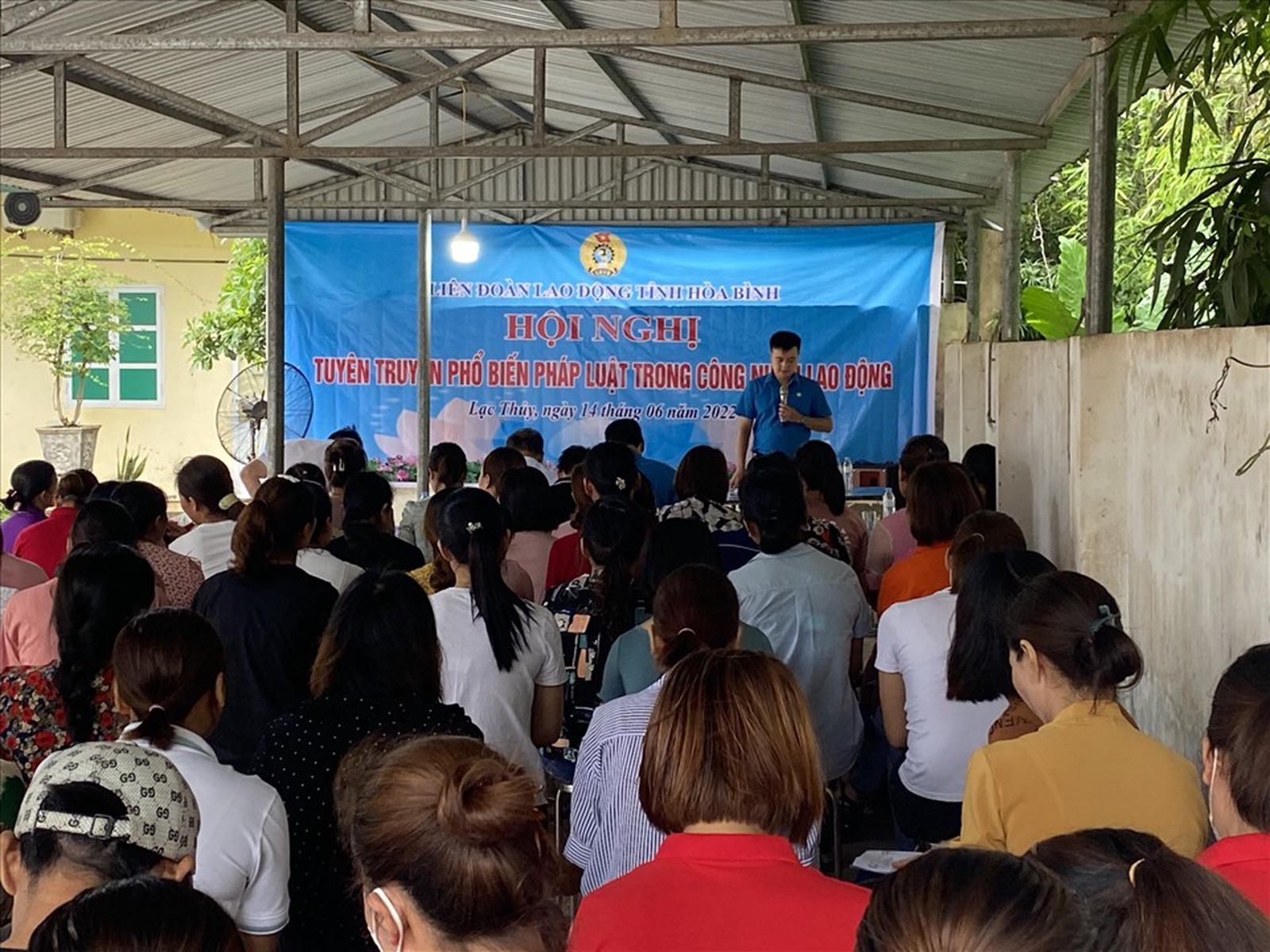 Hội nghị tuyên truyền, phổ biến pháp luật cho người lao động tại huyện Lạc Thuỷ ngày 14/6. Ảnh: Lan Anh