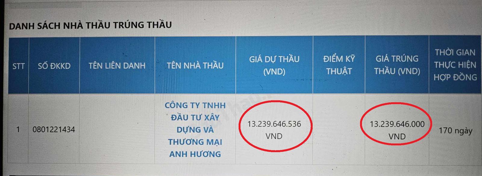 Theo tìm hiểu của phóng viên Báo Thanh tra trên cổng thông tin đấu thầu thì chỉ ghi đây là 2 gói thầu đầu tiên mà Công ty TNHH Đầu tư xây dựng và Thương mại Anh Hương thực hiện, ngoài ra không thấy ghi nhận đơn vị này trúng thầu hay thi công bất cứ gói thầu nào khác.