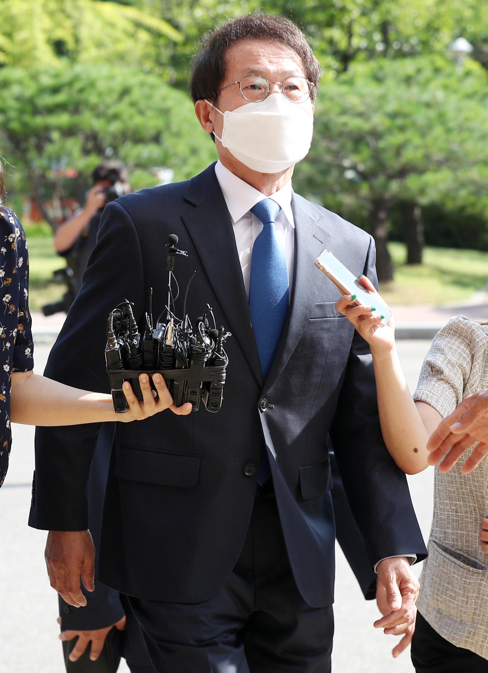 Giám đốc Sở Giáo dục Seoul Cho Hee-yeon phát biểu với giới truyền thông khi ông đến Văn phòng CIO ngày 27/7/2021. Ảnh: Yonhap