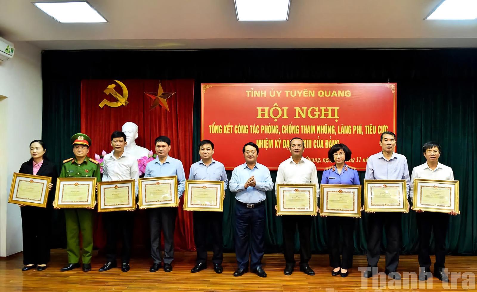 Cũng tại Hội nghị đã công bố và trao Bằng khen của Chủ tịch UBND tỉnh Tuyên Quang cho 9 tập thể và 11 cá nhân đã có thành tích xuất sắc trong công tác phòng, chống tham nhũng, lãng phí, tiêu cực nhiệm kỳ Đại hội XIII của Đảng.