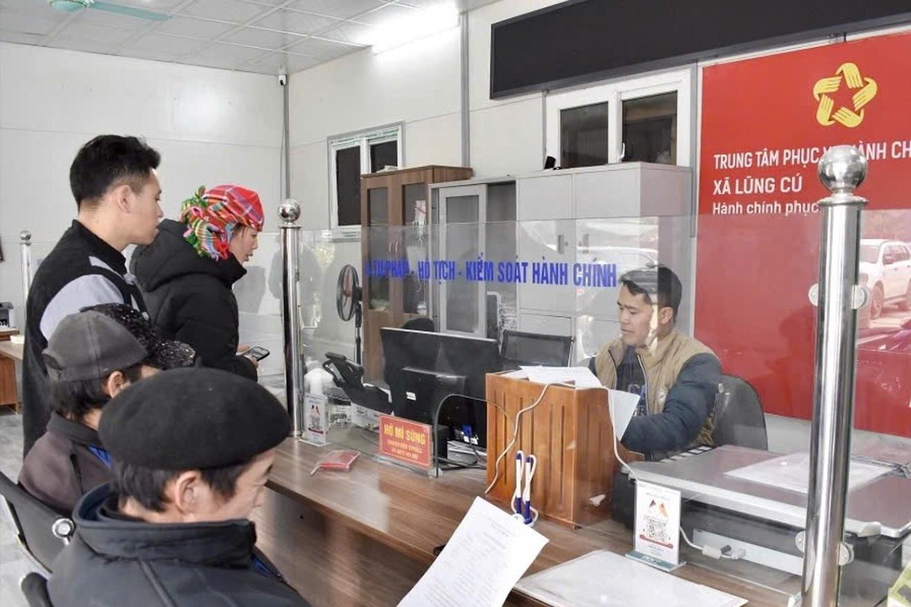 Người dân đến Trung tâm Phục vụ hành chính công xã Lũng Cú thực hiện thủ tục hành chính, thuận tiện và nhanh chóng. Ảnh: Thành Tuyên