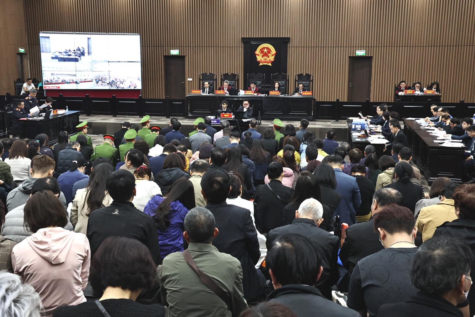 Toàn ảnh phiên tòa có sự tham gia của nhiều bị hại trong vụ án