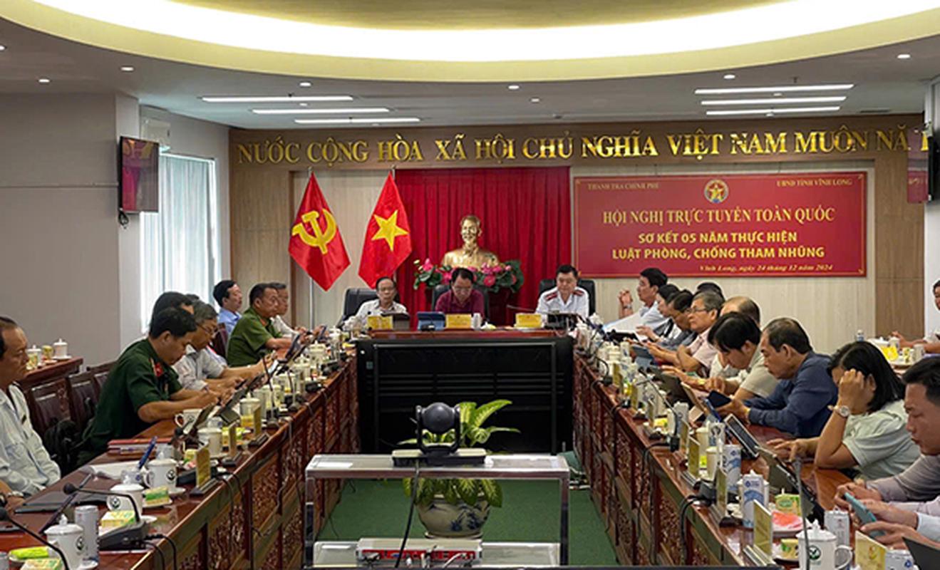 Hội nghị trực tuyến sơ kết 5 năm thực hiện Luật PCTN tại điểm cầu Vĩnh Long. Ảnh: ttra.vinhlong.gov.vn