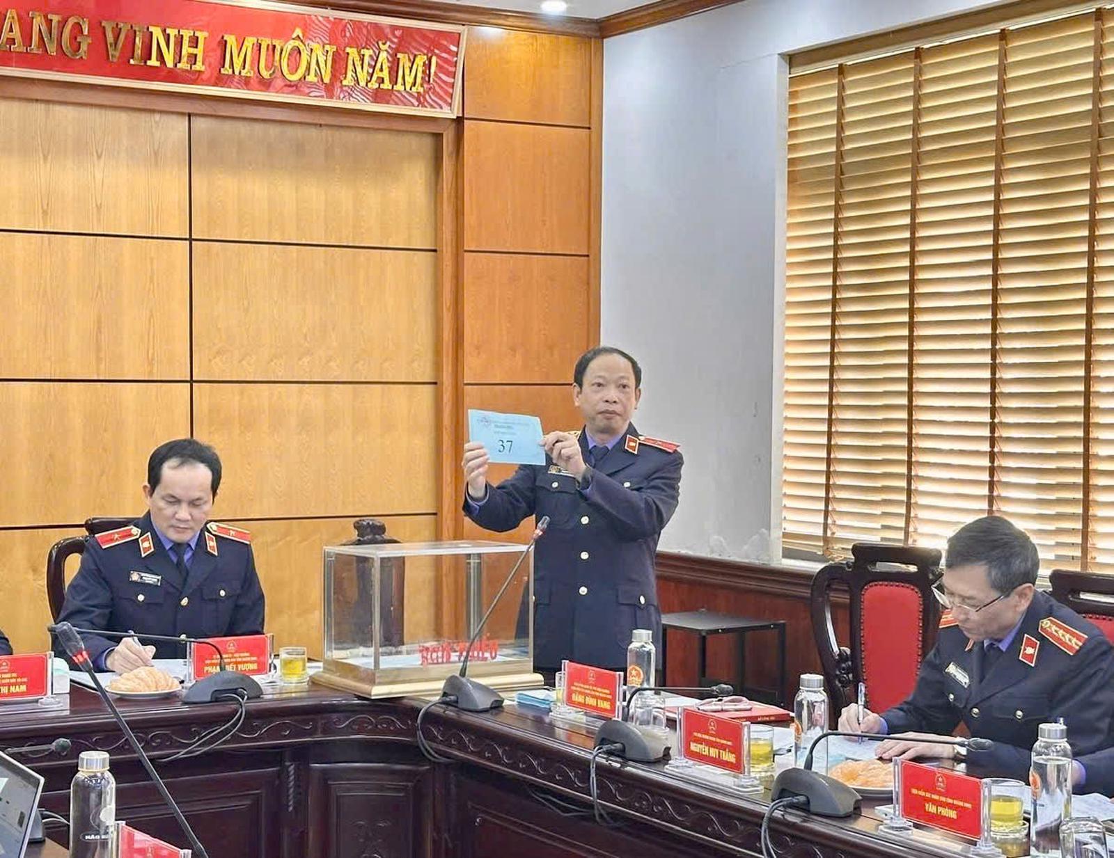 Thừa ủy quyền của Viện trưởng VKSND tối cao, Chánh Thanh tra VKSND tối cao Mai Thị Nam, Ủy viên Ban Chấp hành Đảng ủy VKSND tối cao, Phó Ban Chỉ đạo thực hiện dân chủ ở cơ sở ngành KSND dự và chỉ đạo hội nghị. Tham dự, chứng kiến và giám sát việc bốc thăm có đoàn công tác của VKSND tối cao gồm Thanh tra VKSND tối cao, Vụ Tổ chức cán bộ, đại diện Ủy ban Kiểm tra Đảng ủy VKSND tối cao; lãnh đạo VKSND tỉnh Quảng Ninh; lãnh đạo các đơn vị, công chức, kiểm sát viên, kế toán viên thuộc VKSND tỉnh. Hội nghị được tổ chức trực tiếp và kết nối trực tuyến tới các điểm cầu VKSND hai cấp trong tỉnh.