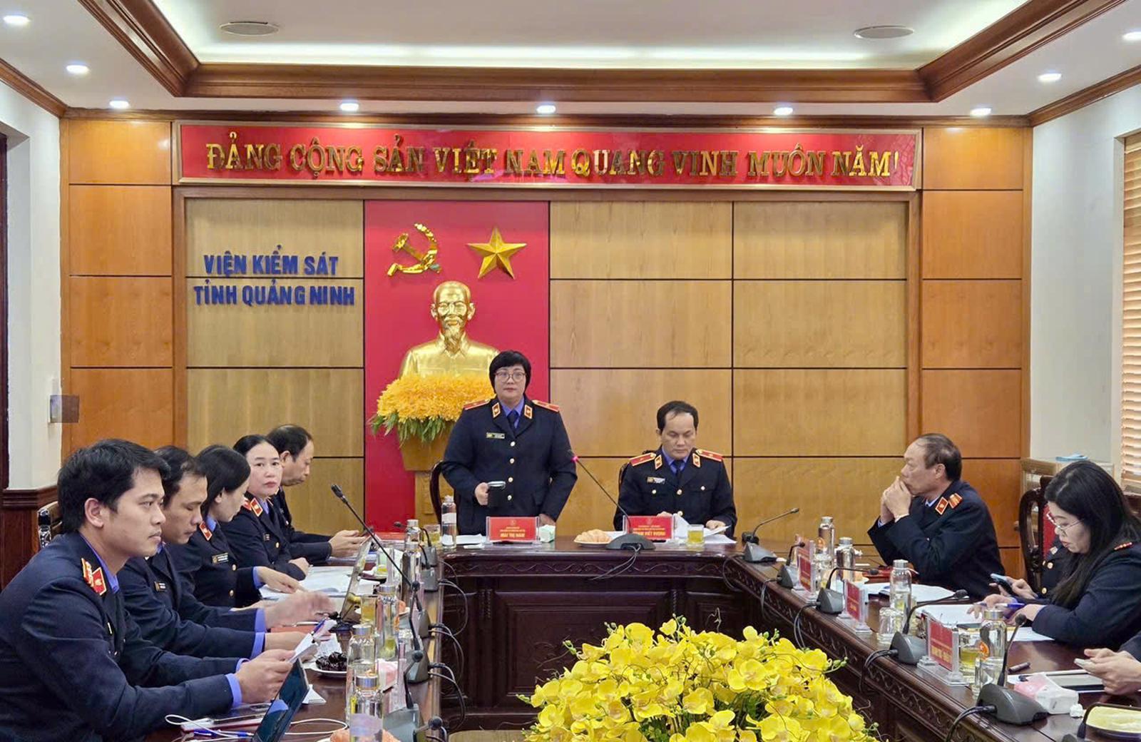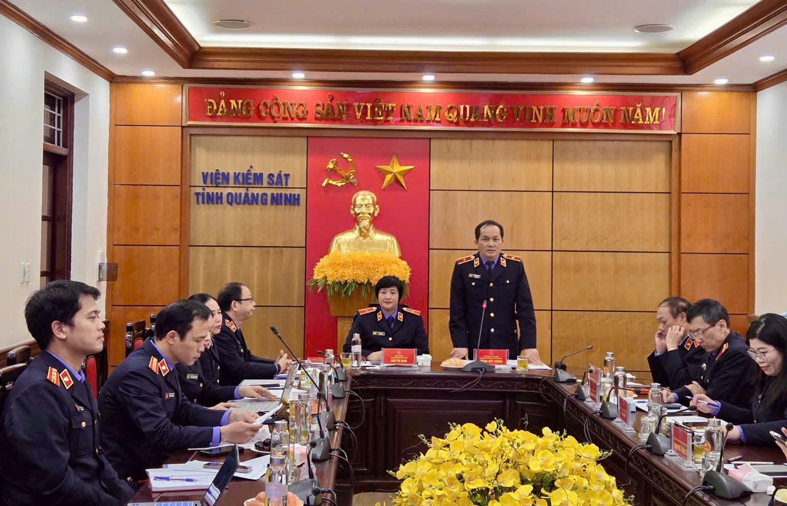 Viện trưởng VKSND tỉnh Quảng Ninh Phạm Viết Vượng phát biểu tại hội nghị. Ảnh TT VKSND TC