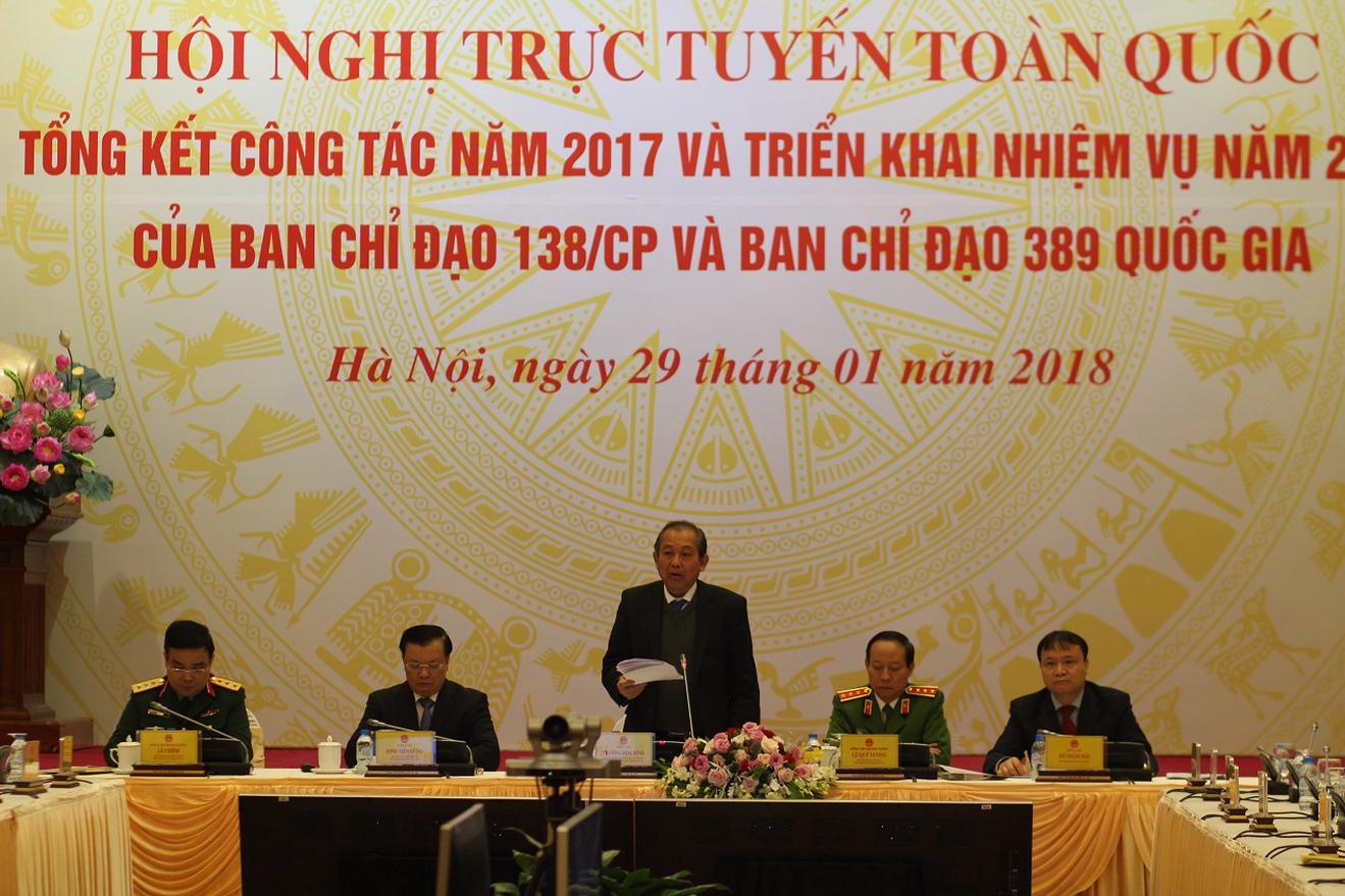 Theo Báo cáo tóm tắt của Cơ quan thường trực Ban Chỉ đạo phòng, chống tội phạm (BCĐ 138) và Cơ quan thường trực Ban Chỉ đạo chống buôn lậu, gian lận thương mại và hàng giả quốc gia (BCĐ 389), năm 2017, đã đạt được nhiều kết quả tích cực. Kinh tế - xã hội phát triển toàn diện; phòng, chống tham nhũng được đẩy mạnh; tiềm lực quốc phòng, an ninh được tăng cường; an sinh, trật tự, an toàn xã hội được bảo đảm; tổ chức thành công Năm APEC 2017. Uy tín, vị thế của Việt Nam trên trường quốc tế được nâng cao. Trong đó có sự đóng góp quan trọng của BCĐ 138, BCĐ 389 ở cả Trung ương và địa phương. Các Ban đã tập trung chỉ đạo quyết liệt, quán triệt, thực hiện nghiêm túc, có hiệu quả các chỉ thị, nghị quyết, kế hoạch, chương trình công tác của Đảng, Quốc hội, Chính phủ và với sự vào cuộc tích cực của các bộ, ngành, đoàn thể, địa phương.