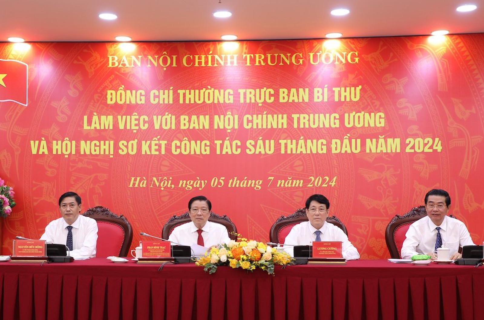 Ban Nội chính Trung ương cũng phải tiếp tục tham mưu xử lý dứt điểm các các vụ án, vụ việc tham nhũng, tiêu cực liên quan đến cán bộ, đảng viên, phục vụ công tác nhân sự Đại hội Đảng các cấp, thực hiện nghiêm chỉ đạo của Tổng Bí thư, theo ông Lương Cường.