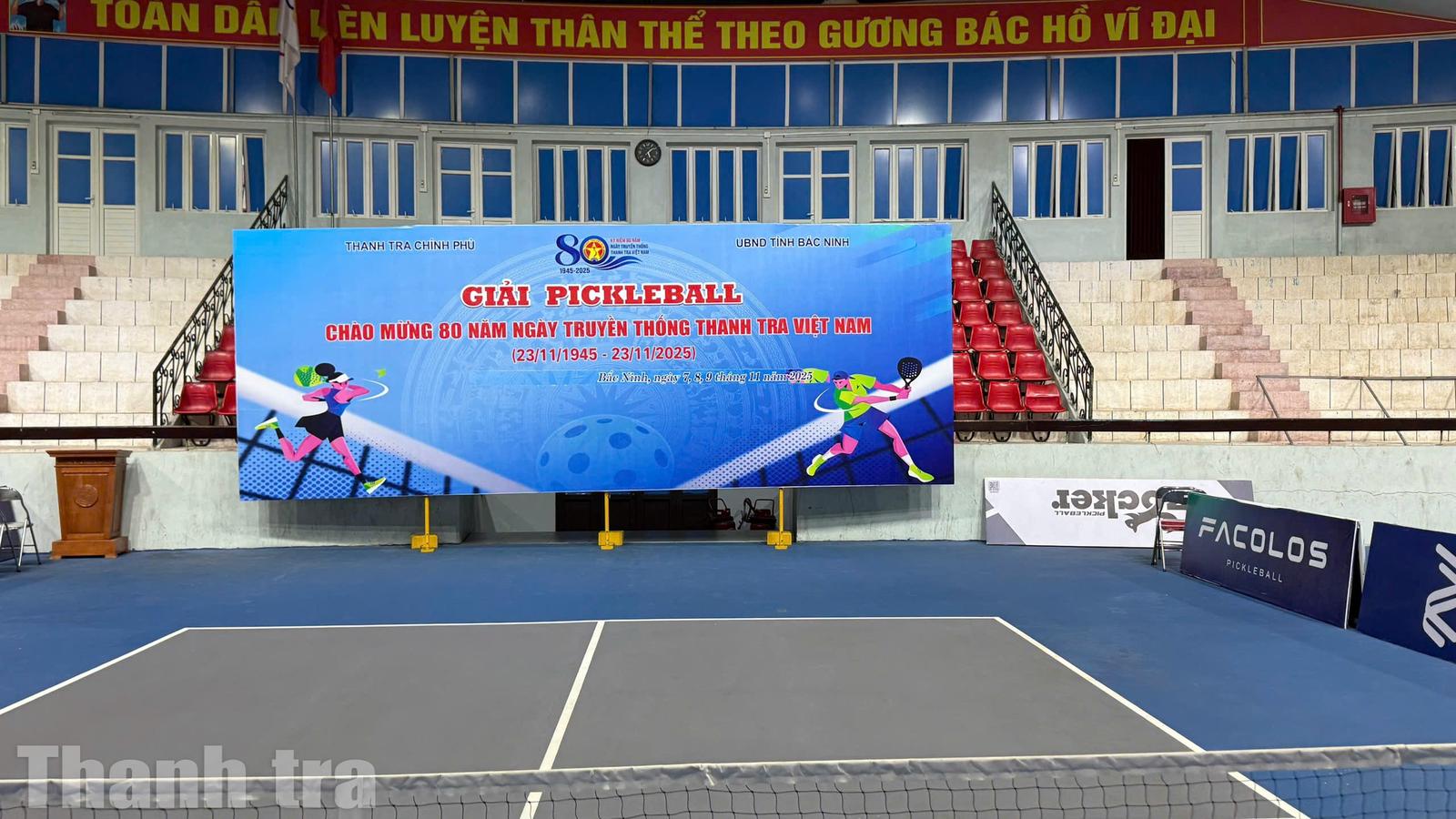 Nhà thi đấu Thể thao tỉnh Bắc Ninh - điểm hẹn thể thao hiện đại bậc nhất vùng Kinh Bắc sẵn sàng chào đón hàng trăm vận động viên ngành Thanh tra từ các bộ, ngành và địa phương về tranh tài, giao lưu. Với hệ thống sân thi đấu đạt chuẩn, khán đài rộng rãi, trang thiết bị đồng bộ và công tác chuẩn bị kỹ lưỡng từ lực lượng chuyên môn, đây sẽ là nơi những cú phát cầu đẹp mắt, những pha bóng kịch tính và tinh thần thể thao cao thượng tỏa sáng. Ảnh: PV