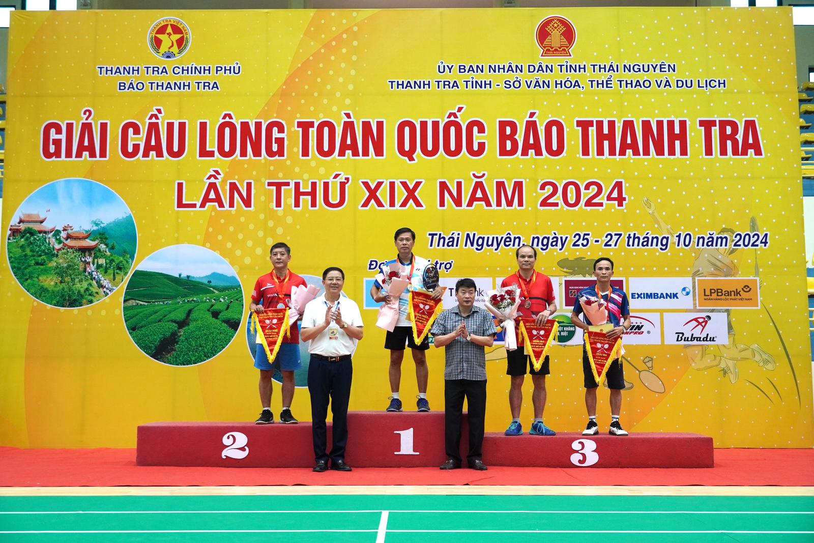 Trưởng Ban Tổ chức Giải, Tổng Biên tập Báo Thanh tra trao Giải Đôi nam lãnh đạo cho các vận động viên. Ảnh: Hoàng Long